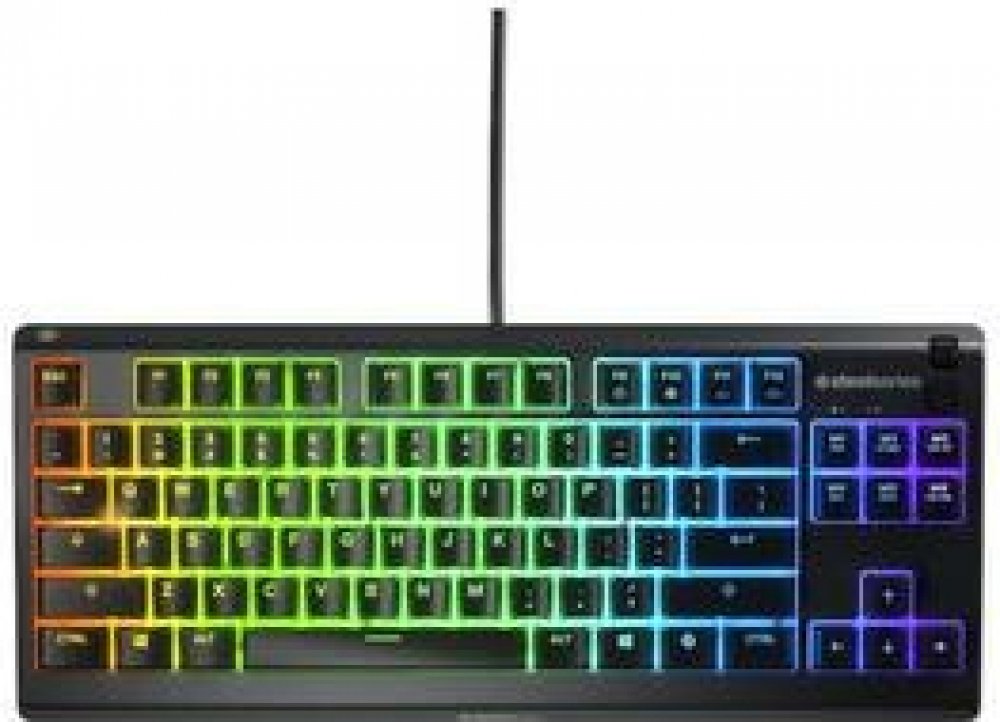 herní klávesnice • RGB podsvícení kláves s 8 zónami • tiché herní spínače SteelSeries Whisper-Quiet • multimediální ovládací prvky s kolečkem • TKL provedení bez numerického bloku • anti-ghosting s funkcí N-Key Rollover • třícestné vedení kabelu • odolnost proti vodě IP32 • vysoce kvalitní polymerový rám • kompatibilní s Windows, Mac OS X, Chromebook, Xbox a PlayStation