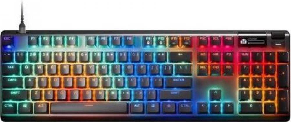 Klávesnice nabízí plně přizpůsobitelné RGB podsvícení, které reaguje na stisky kláves a synchronizuje se s kompatibilními zařízeními SteelSeries. Integrovaný OLED Smart Display slouží jako digitální centrum pro nastavení, umožňuje upravovat nastavení za chodu bez nutnosti opouštět hru a poskytuje informace o výkonu systému či notifikace.