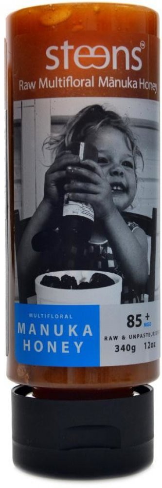 Steens Manuka Honey je raw nepasterizovaný pravý manukový med z Nového Zélandu. Pochází od včel opylujících Balmín metlatý, keř s bílorůžovými květy pocházející původně z Austrálie a Zélandu, kde mu původní domorodé maorské kmeny daly název Manuka. Med z květů Manuky má výjimečný výživový profil - obsahuje celé spektrum enzymů, aminokyselin, antioxidantů, vitamínů, minerálů a dalších látek s velmi zajímavými vlastnostmi. Manukový med je také známý jako chuťově výraznější, bohatší a plnější než jiné medy. Je to dáno velmi vysokou koncentrací účinných látek.