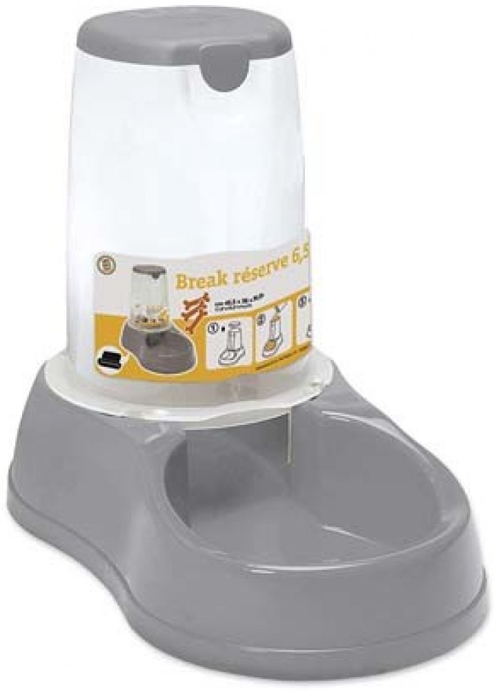 Zásobník Stefanplast Break zajistí vašemu mazlíčkovi vždy dostatek jídla. Stačí nádobu o kapacitě 6,5 litrů naplnit suchým krmivem. Podle množství, které z připevněné misky ubyde, se granule ze zásobníku dosypou. Díky tomu si můžete být jisti, že vaše kočka, pejsek nebo například králík netrpí hlady, zatímco vy jste v práci. Zásobník Stefanplast Break je vyrobený z průhledného plastu s měřicí stup...