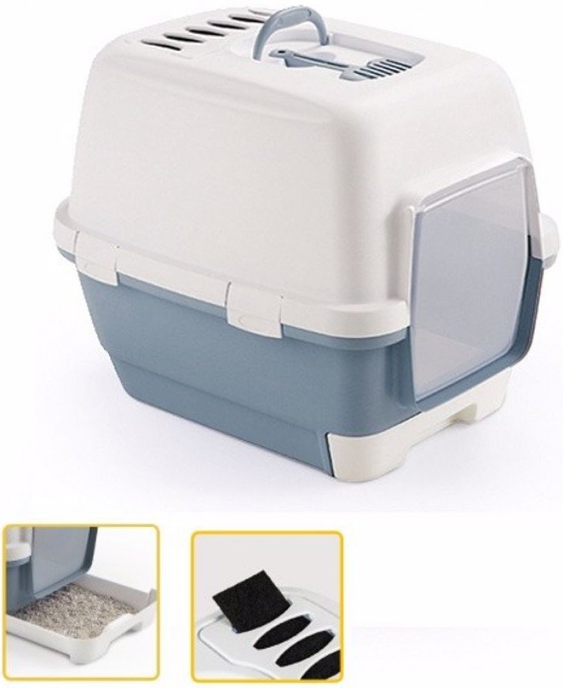 Kočičí záchod Clever & Smart je krytá toaleta pro kočku. Toaleta je vybavena klapkou, uhlíkovým pachovým filtrem a lopatkou. Výhodou této toalety je vyjímatelná nádoba na stelivo pro snadné čištění. Kočičí WC Cathy Clever & Smart je kvalitní záchod pro kočky za příznivou cenu.