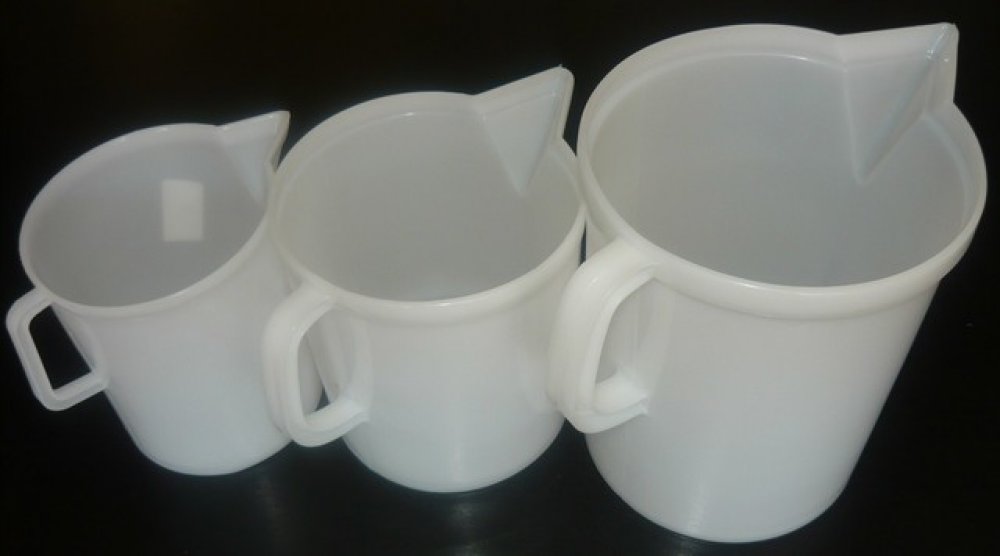 Plastový odměrný hrnek s výlevkou a odměrkou po 1/2 litru, vhodný pro vinaře. Silnostěnný plast odolává nárazům.