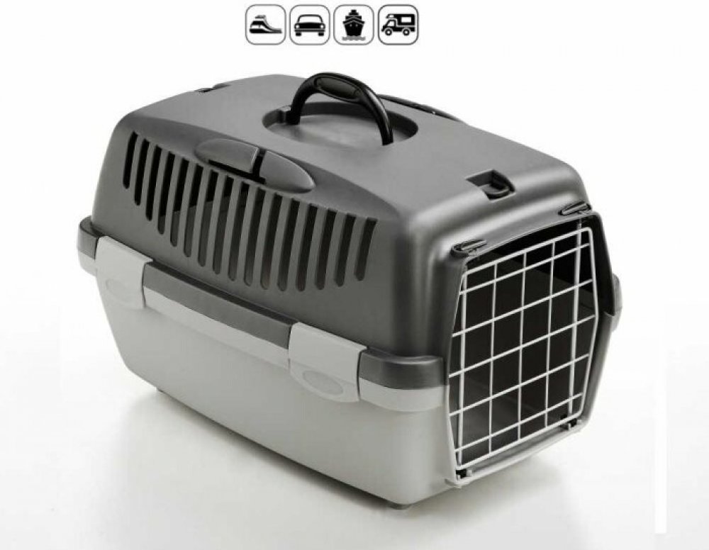 Pro psy a kočky do 6 kg,víko a vana se spojují klipsy, přední dvířka se 4 zámky, nastavitelné pravé nebo levé otevírání dvířek, rukojeť pro snadné přenášení přepravky, dva úchyty pro bezpečnostní pás v autě, vnitřní rozměry 45x29x26,5cm, vnější rozměry 48x32x31cm.