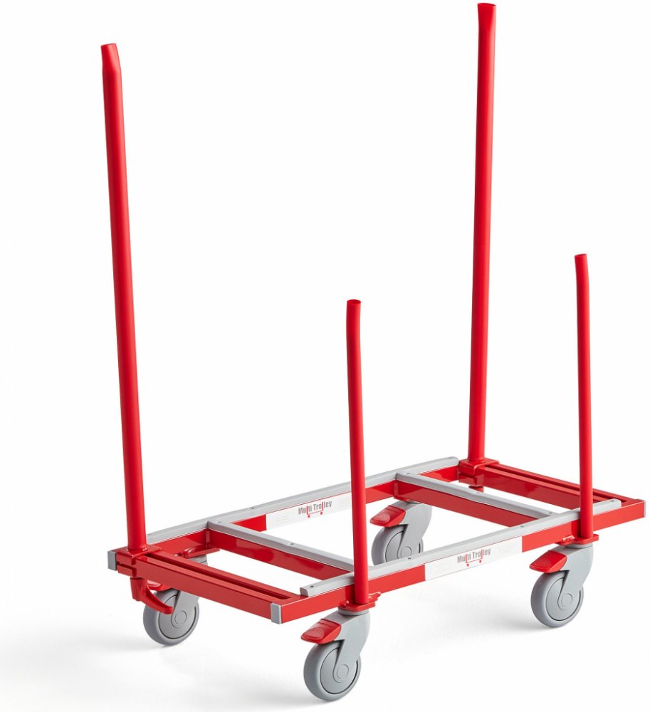 Praktický stěhovací vozík v ergonomickém provedení, určený pro přepravu těžkého a objemného zboží. Díky vozíku Multi Trolley můžete bez pomoci druhých přemísťovat nábytek, např. stoly. Úplně se vyvarujete rizikových pohybů, při kterých byste si mohli při práci s těžkými předměty ublížit.Praktický vozík pro snadný transport těžkých a objemných předmětů. Dodává se se 4 nastavitelnými sloupky. Pohybuje se na 4 otočných kolečkách, z nichž 2 jsou vybavena brzdou. Všechna kola se velmi snadno otáčí. Vozík stačí nasunout na předmět, který chcete stěhovat, vozík pak překlopit na zem a můžete vyrazit. Díky tomuto postupu zvládne každé stěhování i jedna osoba, bez další pomoci. Navíc je tento způsob šetrný k nákladu i ke zdraví zaměstnanců. Těžké předměty totiž vůbec není nutné zvedat. Multi Trolley je v podstatě velmi univerzální ergonomický stěhovací vozík, který se snadno používá, bez ohledu na to, zda stěhujete kancelářský nábytek, pohovku nebo postel. Díky nosnosti 250 kg pokryje většinu přepravních požadavků.