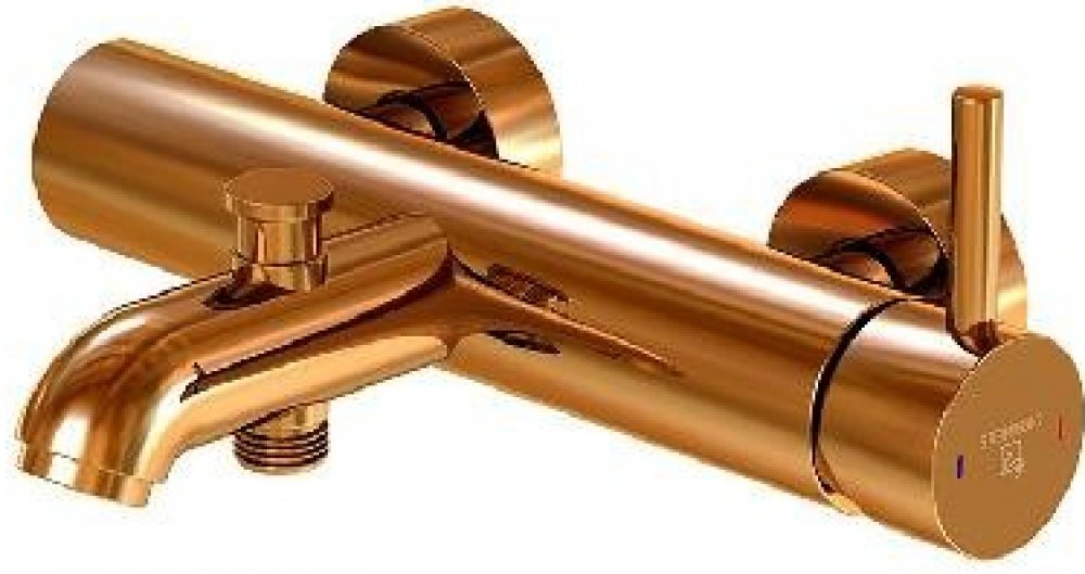 Páková vanová nástěnná baterie barva růžové zlato materiál mosaz rozteč 150 mm ovládání pákové připojení G 1/2" keramická kartuše průtok výtoku vany 15 l/min (při 3 barech) průtok k ruční sprše 16 l/min (při 3 barech) s přepínačem vana/sprcha ochrana proti zpětnému toku s perlátorem pevný výtok vhodné pro průtokové ohřívače vody od 21 kW Sprchová hadice ani ruční sprcha není součástí balení.