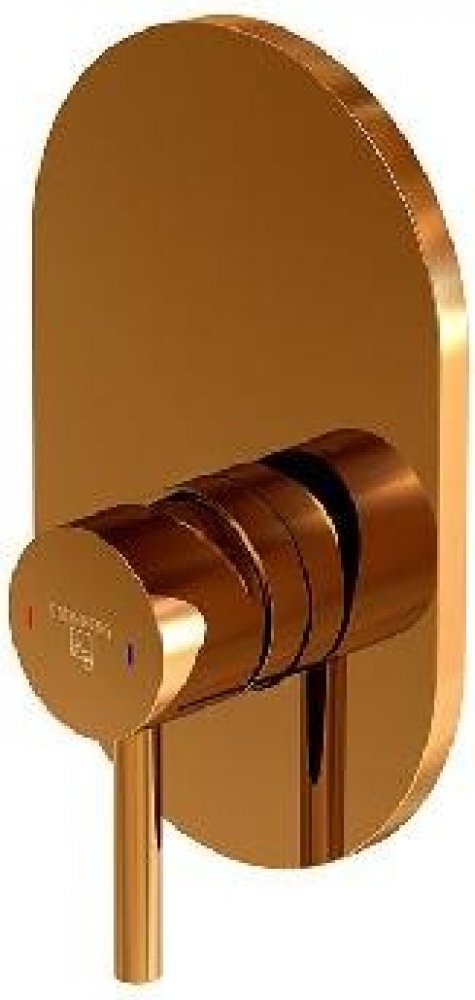 Podomítková baterie pro 1 výstup, bez tělesa barva: růžové zlato materiál: mosaz rozměr: 185 x 120 mm pákové ovládání podomítková instalace oválné krycí těleso kompatibilní s průtokovými ohřívači vody od 21 kW montážní těleso není součástí balení