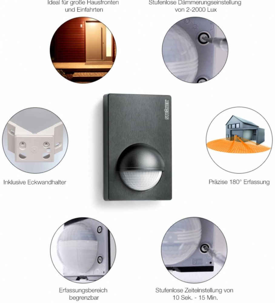 Naše pohybové čidlo Steinel IS 180-2 s infračerveným senzorem se dokonale hodí pro zaměřování oblastí před budovami, příjezdových cest a vnitřních prostor.