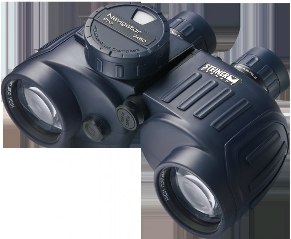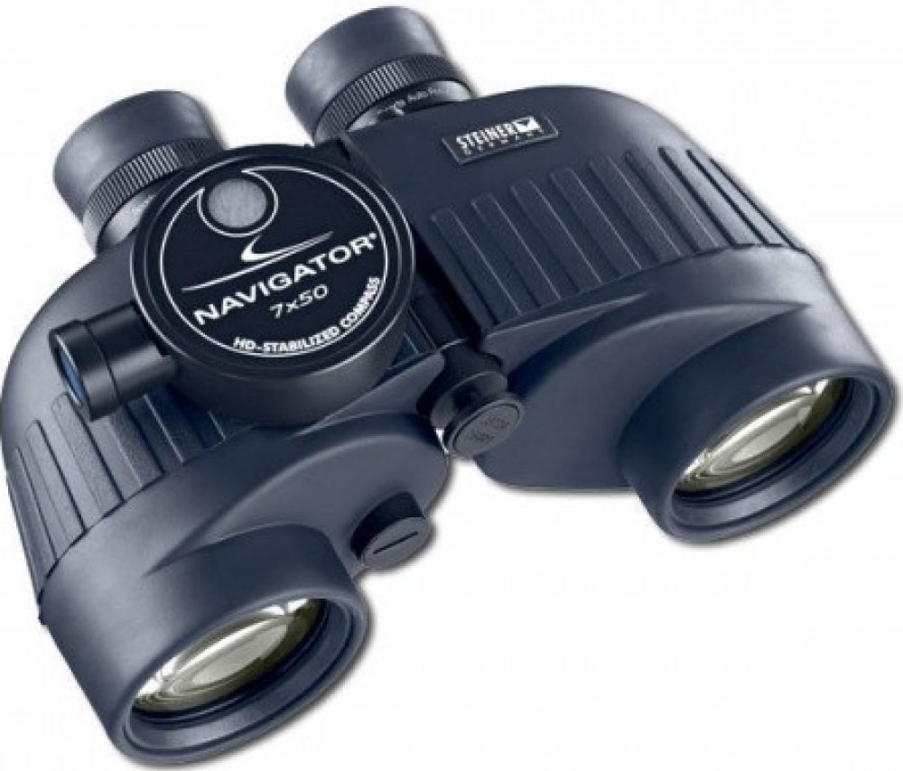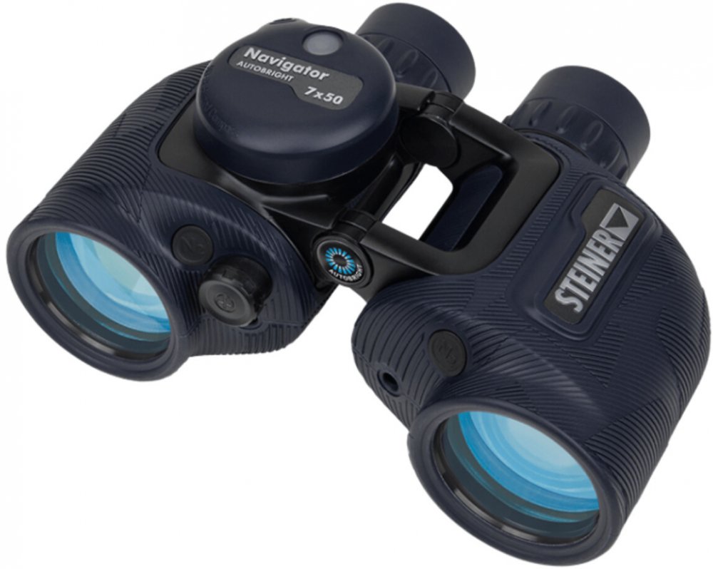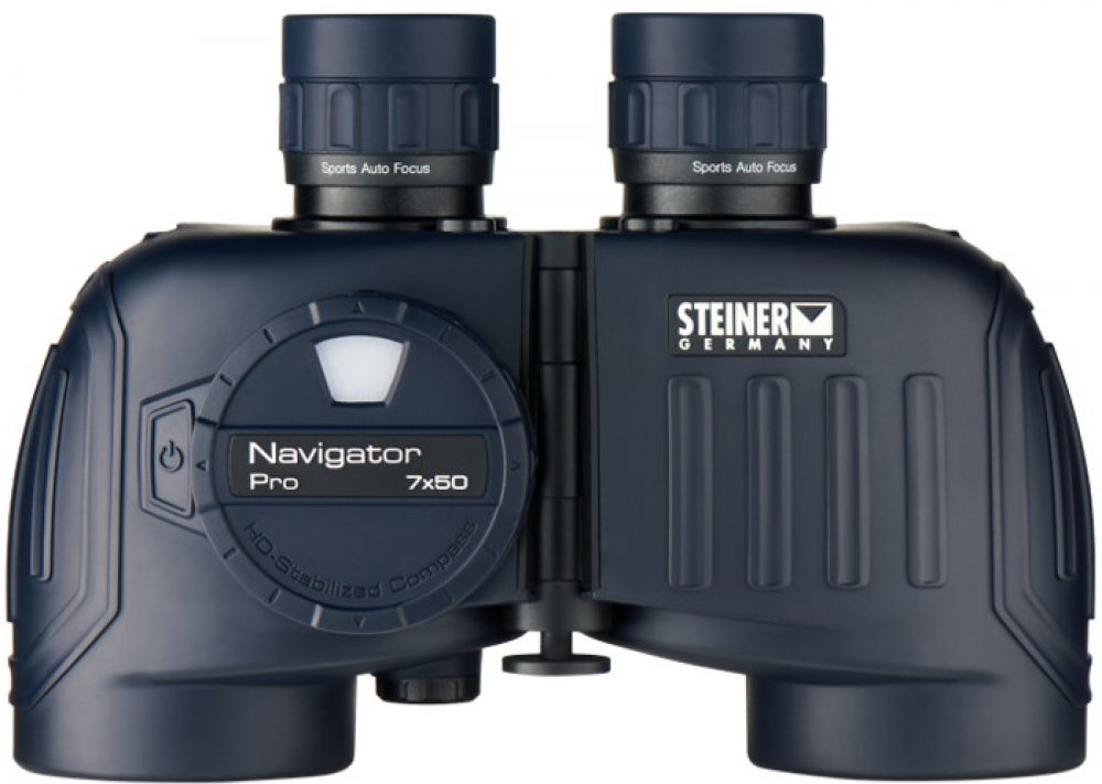 Steiner Navigator Pro 7x50 je námořní dalekohled s velkým analogovým vodotěsným podsvíceným kompasem se stupnicí umožňující určení směru.