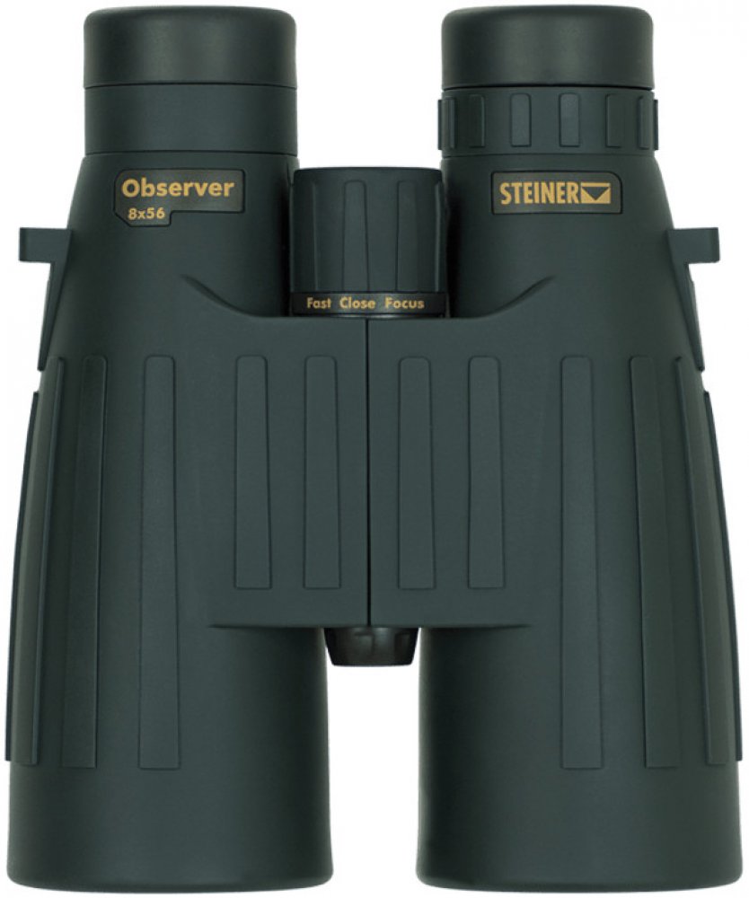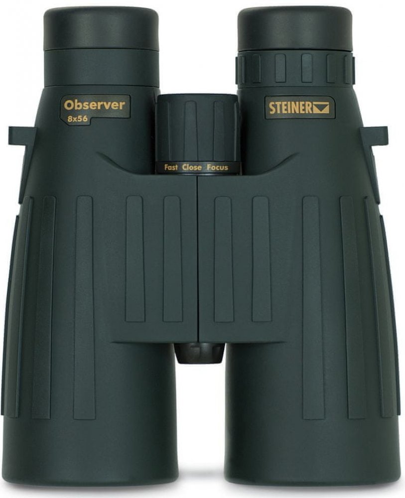 Dalekohled Steiner Observer 8x56 s ideálním poměrem mezi cenou a výkonem poskytuje 8-násobné zvětšení s průměrem čočky 56mm. Uživatelům poskytuje jasný obraz ve dne i za šera. Tento šikula má optimální optické zvětšení a světelnost pro pozorování při lovu, zejména v šeru a noci a za nepříznivých světelných podmínek. Díky systému FAST-CLOSE-FOCUS můžete snadno, rychle a plynule zaostřit a získat ostré detaily od malé vzdálenosti až do nekonečna. Je robustní, odolný, vyrobený z polykarbonátu Makrolon a může být používán při teplotách od -15oC do +55oC. Protiskluzové NBR-Longlife-pogumování odpuzuje olej, kyselé tekutiny a chrání před vlivy počasí. Cylindrické očnice jsou vyrobené z měkkého trvanlivého silikonu.