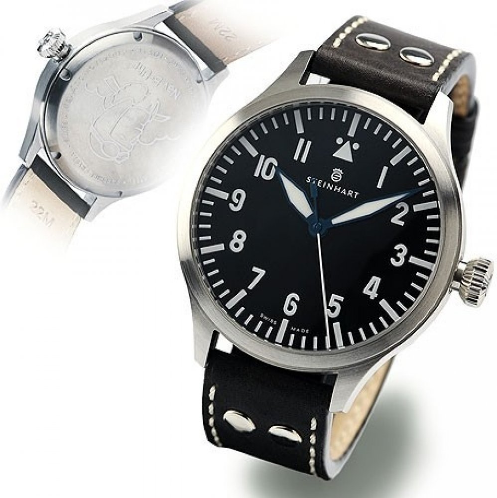 Tyto pilotní hodinky Steinhart byly navrženy podle skutečných historických vzorů. Pouzdro s matnou povrchovou úpravou a nápadnou korunkou je kvalitně zpracováno. Vypouklé safírové sklíčko má dvojitou, vnitřní antireflexní úpravu. Mechanický strojek s automatickým nátahem je švýcarské výroby. V kategorii „pilotních“ hodinek nenaleznete mnoho modelů s podobně příznivým poměrem ceny/výkonu.