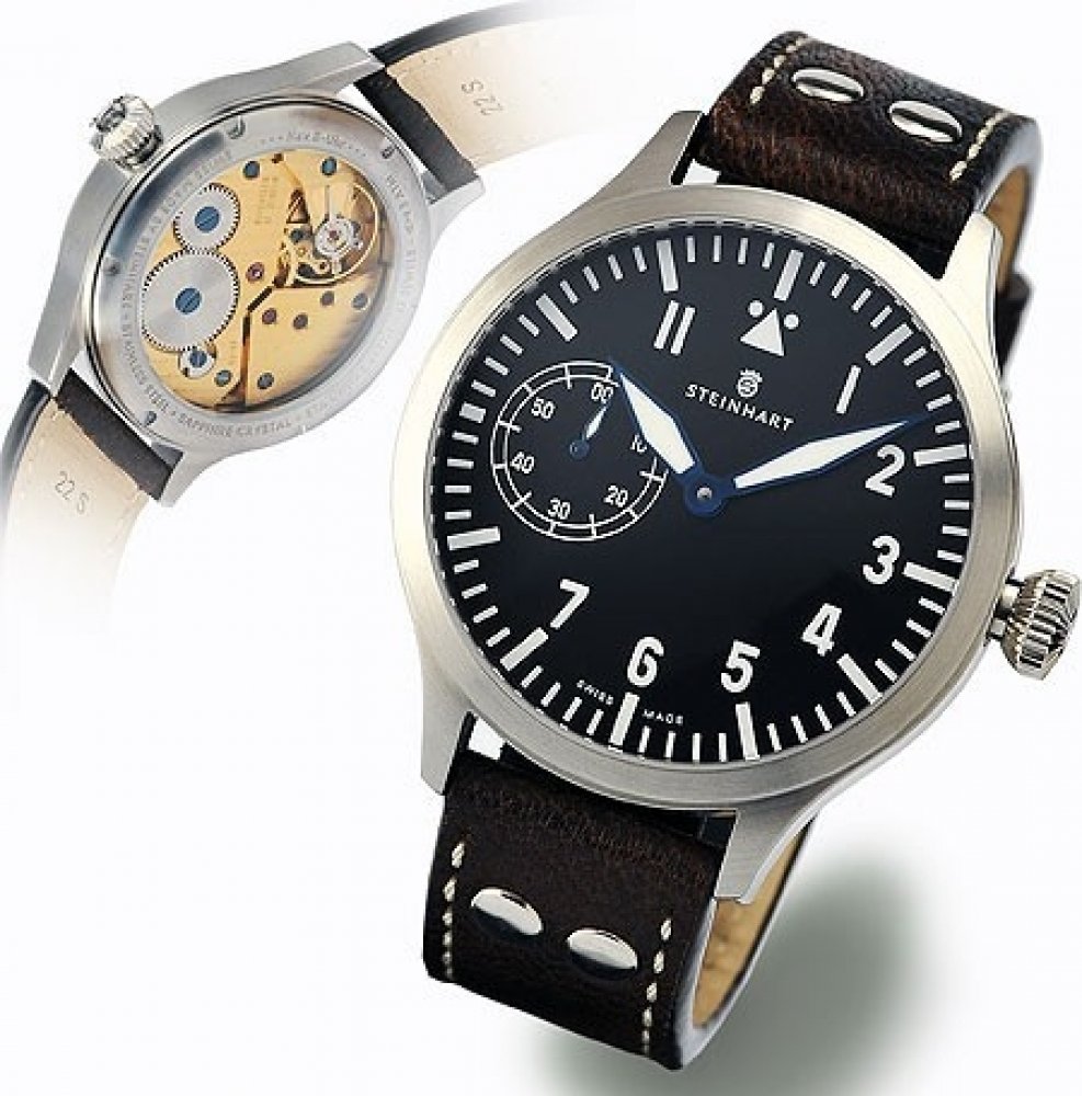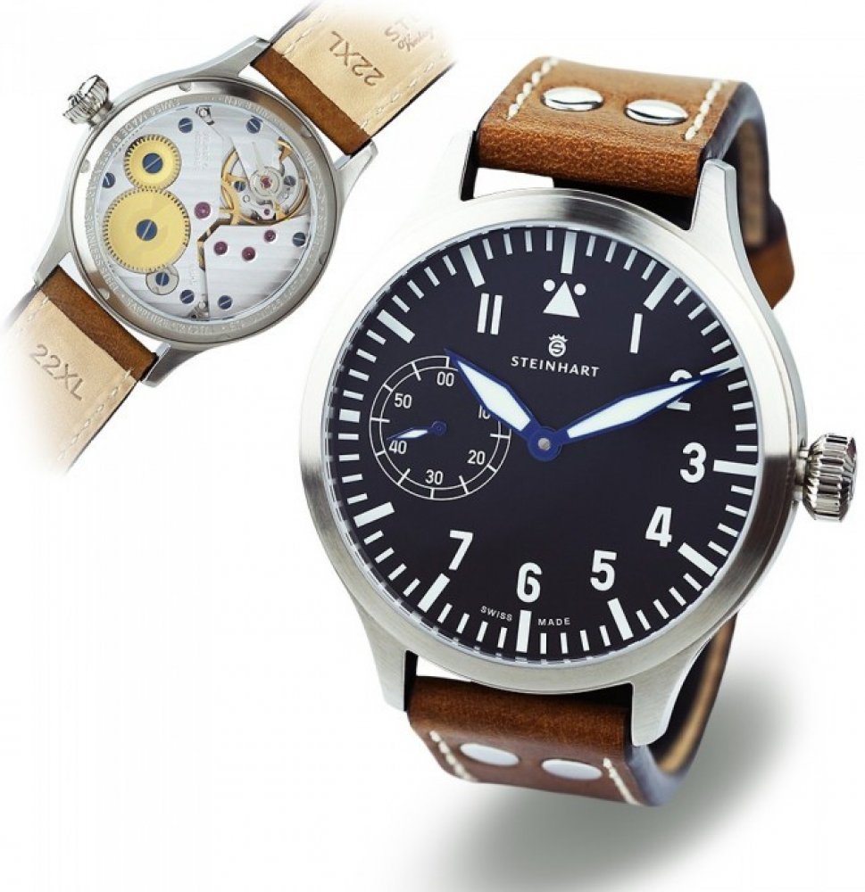 Tyto pilotní hodinky Steinhart byly navrženy podle skutečné historické předlohy. Pouzdro s matnou povrchovou úpravou s nápadnou 10mm korunkou je kvalitně zpracováno. Cibulovitá korunka umožňovala letcům seřizování i v náročných podmínkách a kožených rukavicích. Vypouklé safírové sklíčko má vnitřní antireflexní úpravu. Mechanický strojek Unitas s ručním nátahem dodává punc autentičnosti, zároveň je i dekorován, pro váš požitek při pozorování mechanismu přes průhled dýnkem. Výrobce hodinky dodává na ručně šitých řemenech, které se mohou v barevných odstínech a drobných detailech lišit od vyobrazení na fotkách.