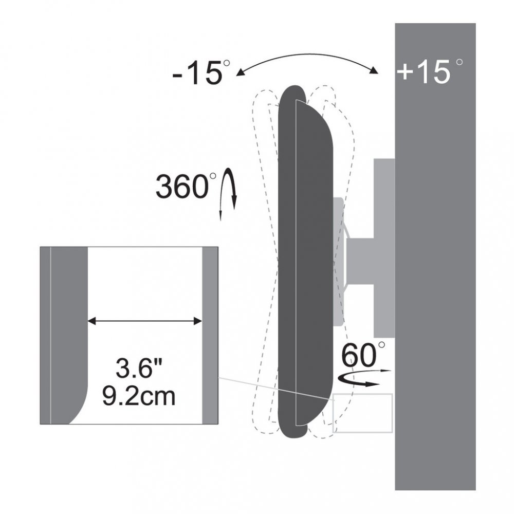 - Max. vzdálenost od zdi: 9,2 cm