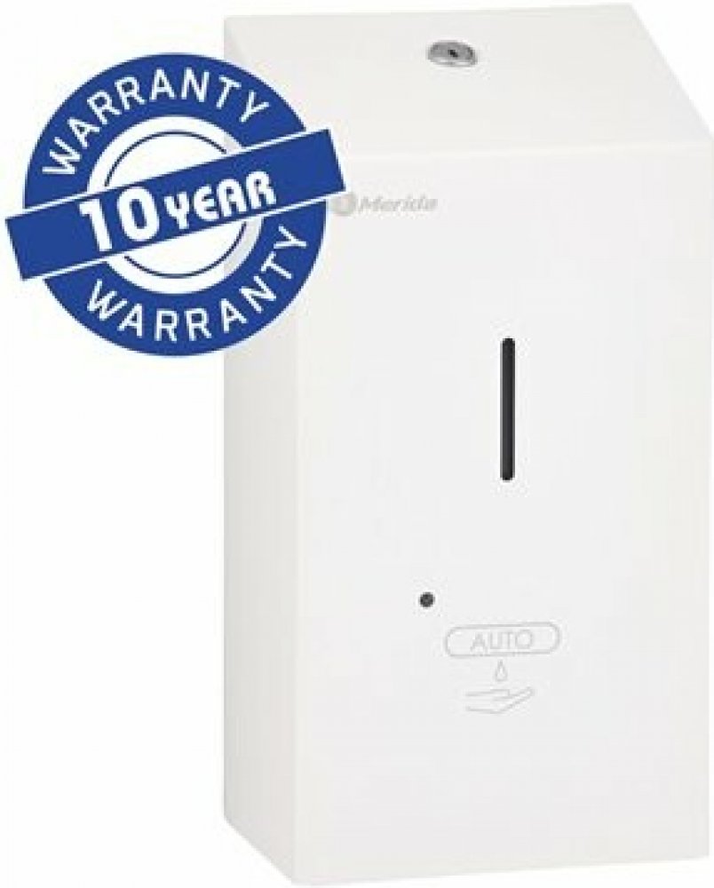 dávkovač na dolévání, objem nádržky 1000 ml mýdlo doplňováno z kanystru aktivováno bezdotykově senzorem přiblížení dávkovač je vybaven unikátním systémem programování velikosti dávky mýdla uživatel si může naprogramovat následující velikosti dávky: 0,2 ml, 0,8 ml nebo 1,3 ml dávkovač by měl být namontován ve vzdálenosti min. 130 mm od povrchu desky nebo umyvadla LED kontrolka: zelená - připraveno k práci, červená - výměna baterií napájení 4 bateriemi R14, baterie jsou součástí vyrobeno z kartáčované (matné) lakované bílé nerezové oceli boční spoje svařené a leštěné neviditelné panty zajištěno odolným ocelovým cylindrickým zámkem zámek v jedné rovině s povrchem zařízení uzamykatelný Záruka 10 let Udržení záruky vyžaduje uplatnění pravidel čištění a údržby popsaných v záručních podmínkách (k dispozici ke stažení).