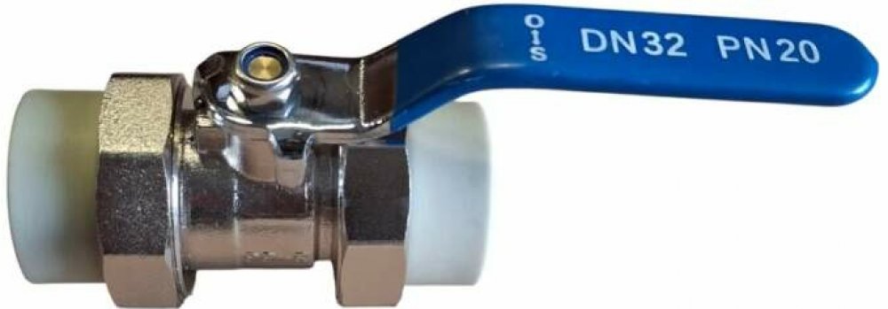 Mosazný kulový kohout s PPR varnými hrdly 32mm a oboustranným rozebíratelným šroubením. (PN 20 / SDR 6)