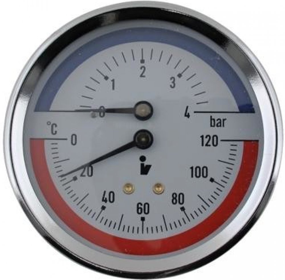 Termomanometr 0-6bar, 0-120°C,1/2" zadní vývod.