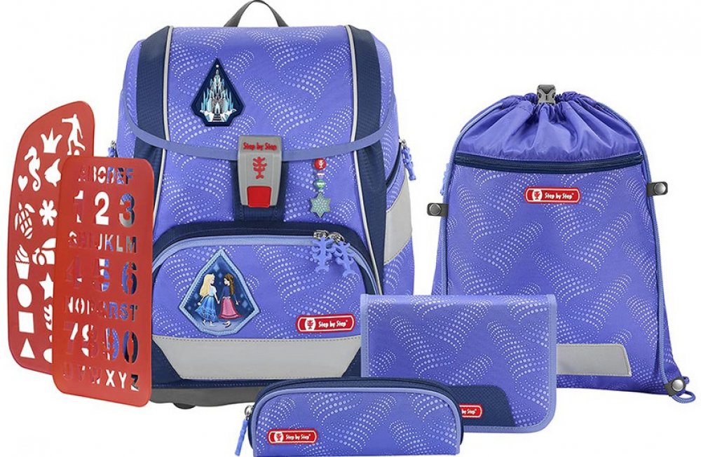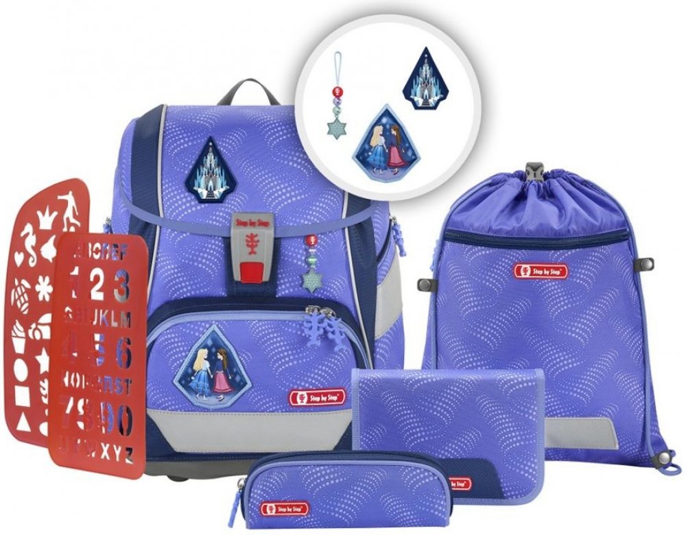 6dílný set obsahuje: aktovku, plný penál, pouzdro, pytlík na cvičební úbor nebo přezůvky, šablony a vyměnitelné obrázky Magic Mags