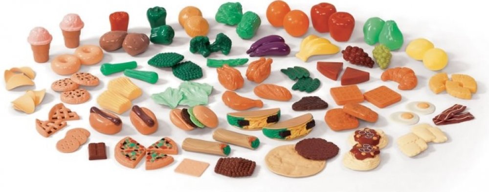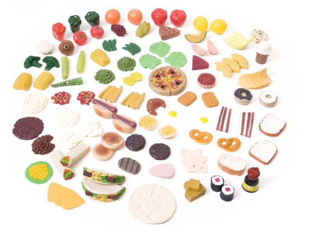 - sada obsahuje: ovoce, zeleninu, maso, pečivo, moučníky a cukrovinky, sendviče, snídaňové a svačinkové drobnosti, zákusky, Italské, Japonské, Mexické a Čínské druhy jídla