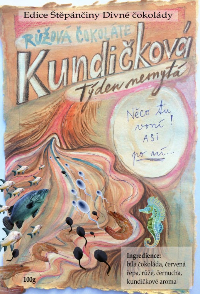 Kundičková – Štěpánčiny divné čokolády Královna edice Štěpánčiných – nejdivnější z divných čokolád. Mládeži do 18 let nepřístupná :-). Něco, co mužům nedá spát, dokud nezkusí, a i v ženách to vyvolává víc než zvědavost. Bílá ochucená čokoláda ve tvaru ženského přirození spatřila světlo po dlouhém hledání toho správného „přírodě identického aroma“. Ideální dárek všem manželům, milencům, kolegům, šv...