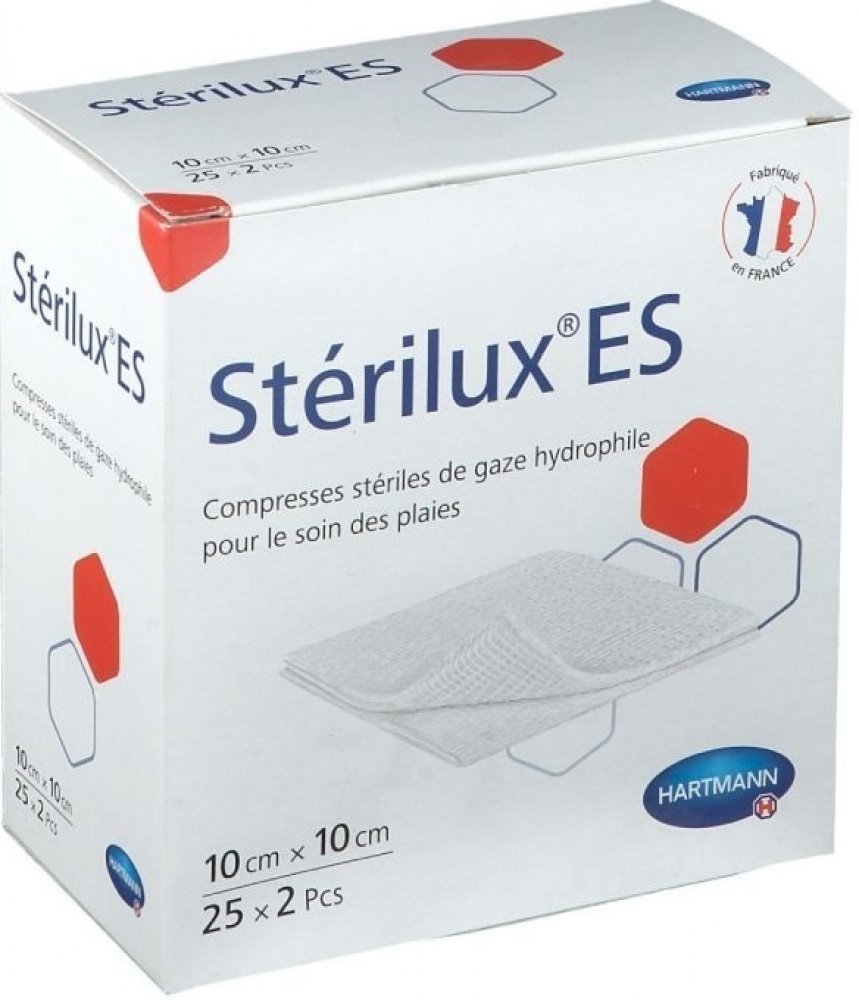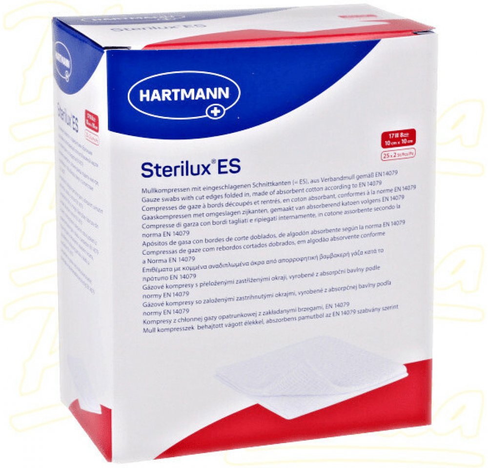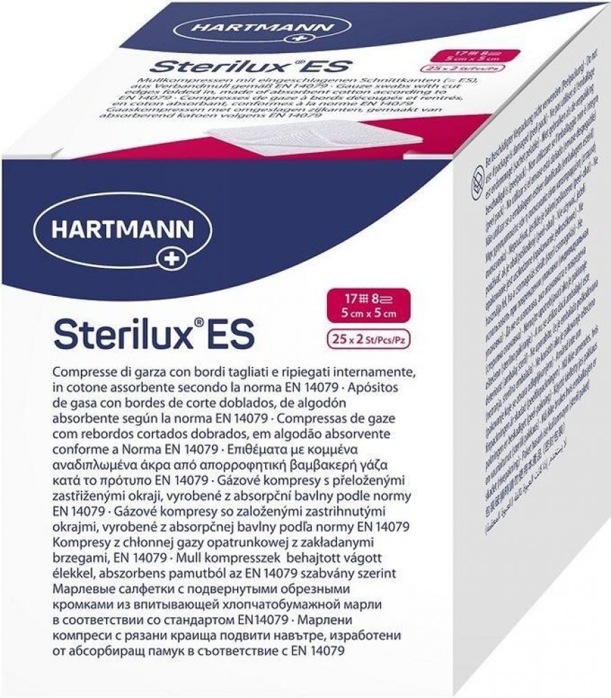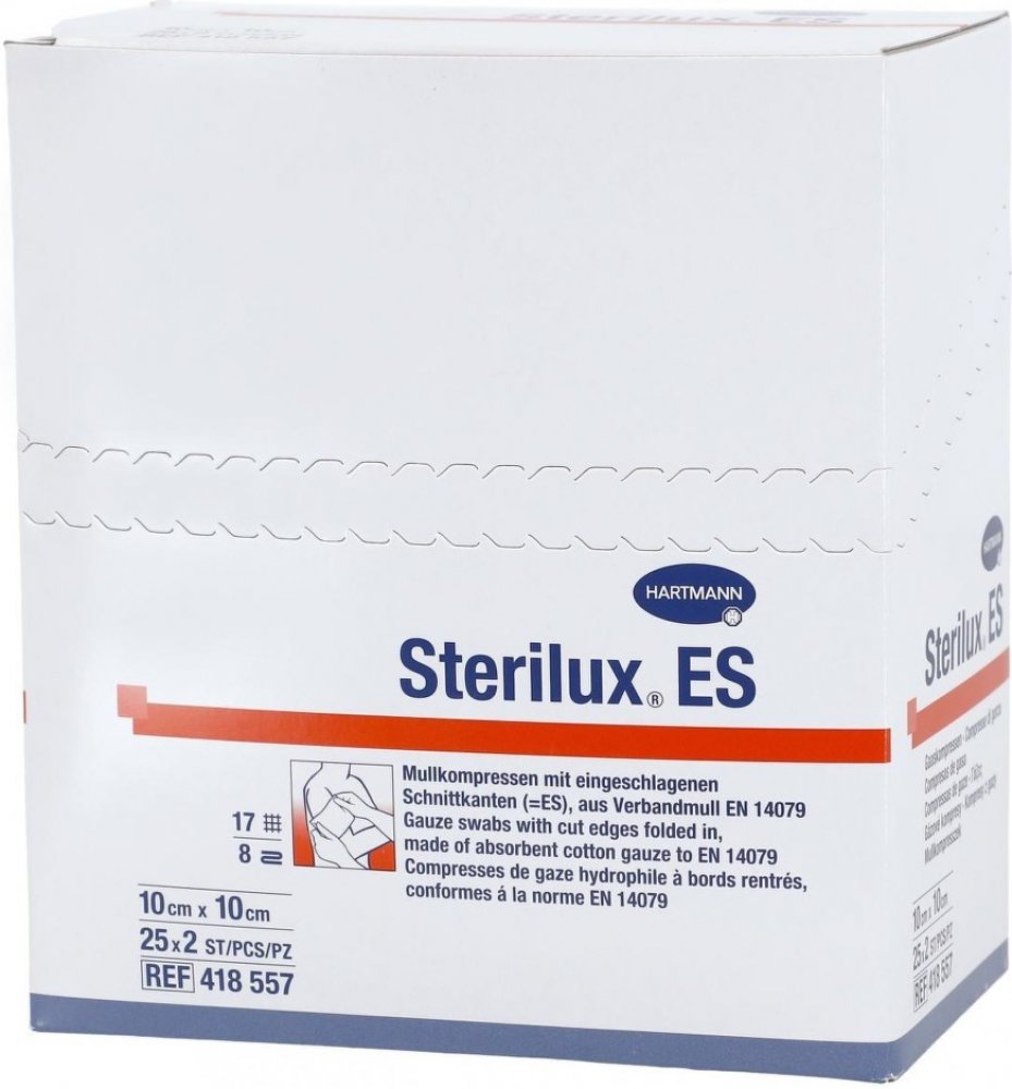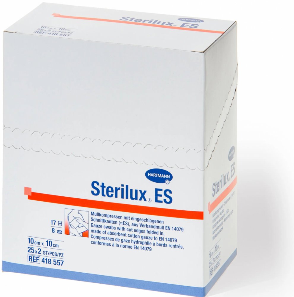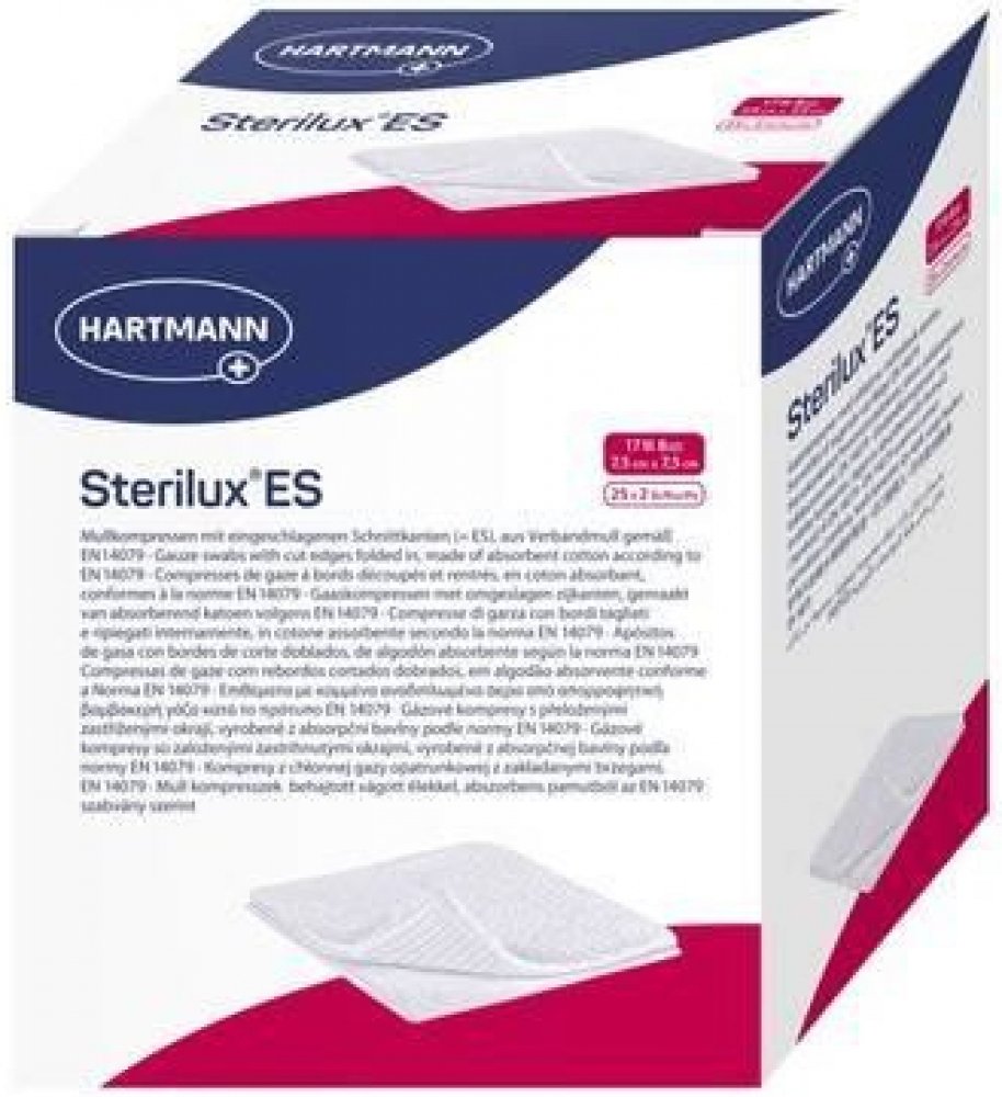 Kompresy Sterilux ES jsou krytí z obvazové gázy o 17 vláknech se založenými okraji. Jako klasický krycí obvazový materiál mají širokou oblast použití a pro ošetřování ran jsou nezbytné. Používají se k všestranné péči o rány, zejména při prvním ošetření znečištěných, infikovaných a silně secernujících ran; dále jako sekundární krycí materiál a jako tampony při malých operativních zákrocích v ambulancích a na klinikách.