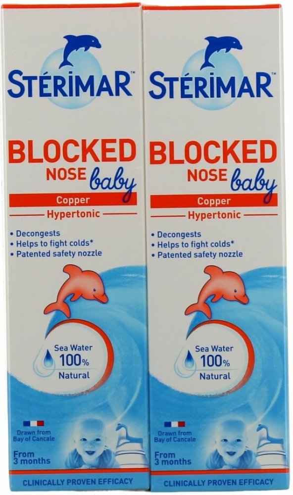 Stérimar Baby Na ucpaný nos je přírodní produkt s mořskou vodou v hypertonické koncentraci (mírně slanější než jsou buňky lidského těla) obohacený o měď. Pomocí vyšší koncentrace soli přirozeně uvolňuje ucpaný nos. Měď působí antibakteriálně, je vhodným pomocníkem při infekční bakteriální rýmě. Je určen pro krátkodobé použití při infekčních rýmách. Pro děti již od 3 měsíců věku do 3 let.