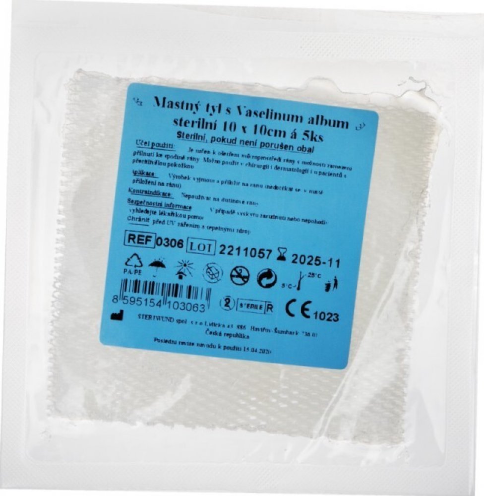 Mastný tyl Steriwund je vyroben z obvazové textilies S20, která představuje vysoce porézní hydrofobní obvaz z chemických vláken. Vaselinum album je farmaceutická pomocná látka, bílá průsvitná roztíratelná hmota, která po roztavení slabě fluoreskuje v denním světle. Bez zápachu, neobsahuje aktivní látky. Je sterilizován gama zářením.
