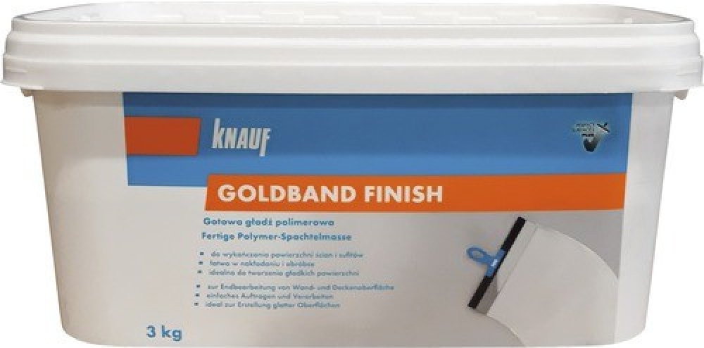 Finální stěrka Goldband Finish je určená pro tenkovrstvé a celoplošné stěrkování vyzrálých minerálních stavebních podkladů, jako jsou např. sádrokartonové desky. Vhodná je pro finální vyhlazení povrchů stěn a stropů v interiéru, stejně tak pro finální úpravu SDK spojů.