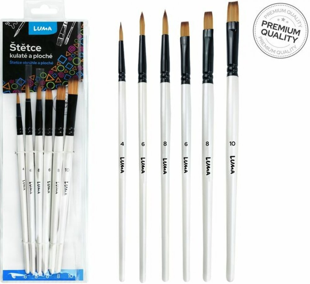 Štětce LUMA kulaté a ploché syntetické - sada 6 ks