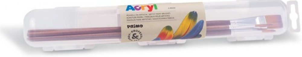 Štětce Primo LUX sada 5ks (kulaté č.5,8 a ploché č.6,10,18) v plastovém pouzdru