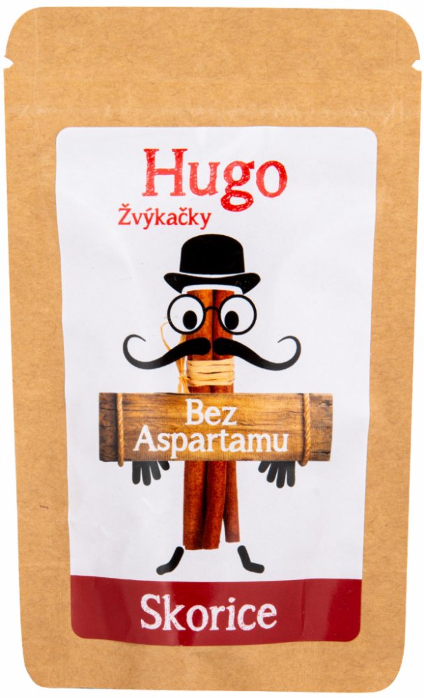 Pokud hledáte žvýkačku, která je chutná, zdravá, a navíc bez obsahu umělých sladidel, vyzkoušejte české žvýkačky Hugo. Tyto mají skořicovou příchuť a jsou slazeny xyllitolem, který se získává z kůry břízy nebo z ovoce. Žvýkačky jsou barvené pouze přírodními složkami z červené řepy, bezu a mrkve. Neobsahují aspartam, cukr ani žádná umělá sladidla. V porovnání s běžnými žvýkačkami mají rovněž méně k...