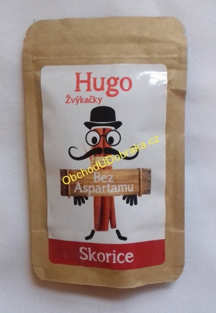 Pokud hledáte žvýkačku, která je chutná, zdravá, a navíc bez obsahu umělých sladidel, vyzkoušejte české žvýkačky Hugo. Tyto mají skořicovou příchuť a jsou slazeny xyllitolem, který se získává z kůry břízy nebo z ovoce. Žvýkačky jsou barvené pouze přírodními složkami z červené řepy, bezu a mrkve. Neobsahují aspartam, cukr ani žádná umělá sladidla. V porovnání s běžnými žvýkačkami mají rovněž méně kalorií. V balení 30 kusů. Výrobek je bezlepkový a vhodný pro vegany. Země původu: Česká republika. Skladování Skladujte v suchu při teplotě do 25 °C v uzavřeném obalu. Ukládejte mimo dosah dětí. Složení Xylitol (vyskytující se v kůře břízy bělokoré a v ovoci), gumový základ, přírodní skořicová příchuť, arabská guma (pryskyřice z mízy akácií), sójový lecitin (bez GMO), uhličitan vápenatý (přírodní minerál), karnaubský vosk (z listů palmy Copernicia).