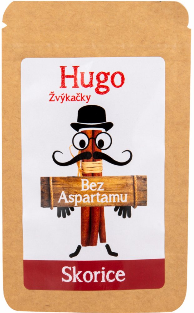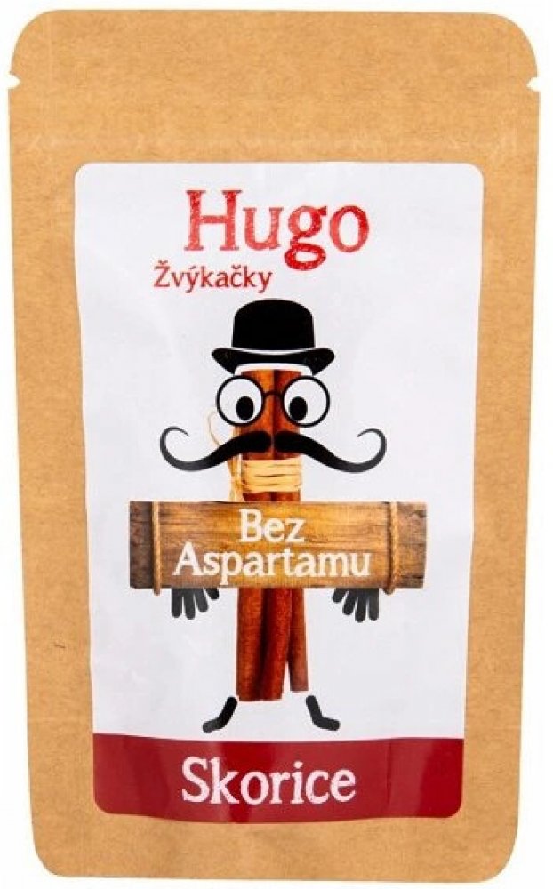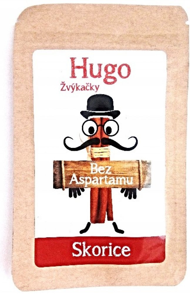Tyto osvěžující žvýkačky se skořicovou příchutí jsou slazeny pouze xylitolem získávaným z kůry břízy bělokoré nebo z ovoce. Neobsahují aspartam, ani žádná umělá sladidla či barviva. Žvýkačky Hugo jsou skvělou alternativou ke klasickým žvýkačkám a bonbónům.