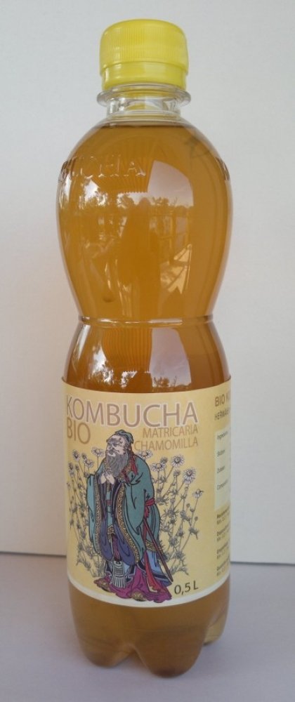 Složení: Voda, odvar z heřmánku 50%, ze zeleného čaje 50%, cukr, kultury kombuchy.