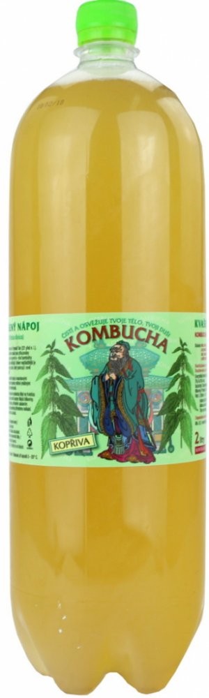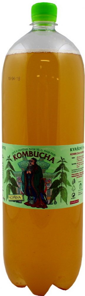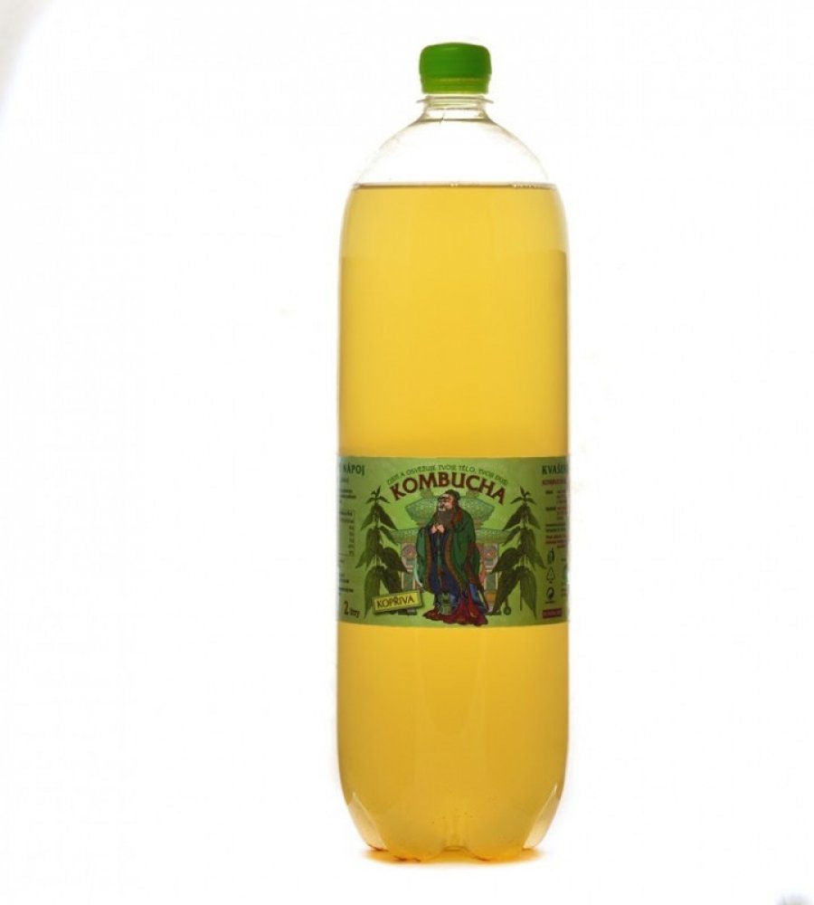 Kombucha kopřiva se vyrábí z bílého řepného cukru a odvaru ze zeleného čaje a kopřivy.