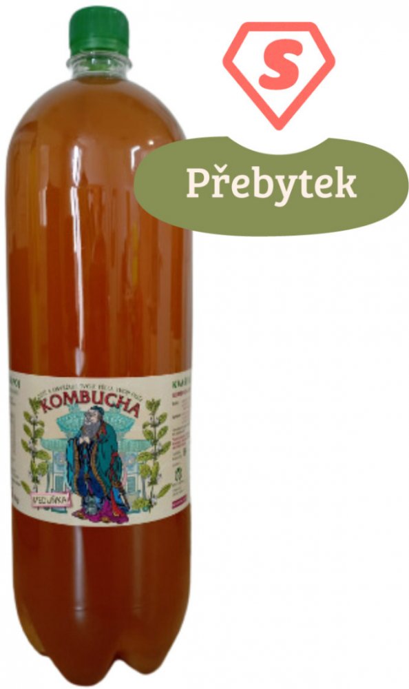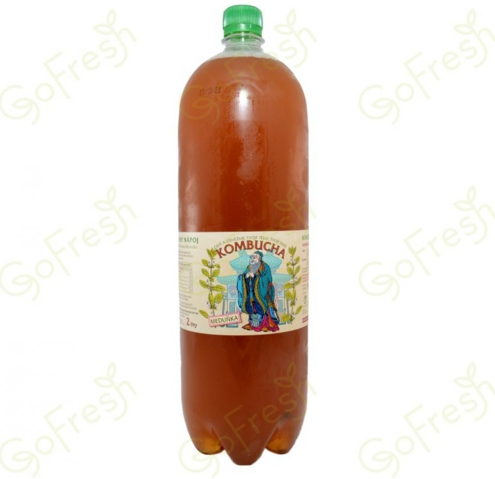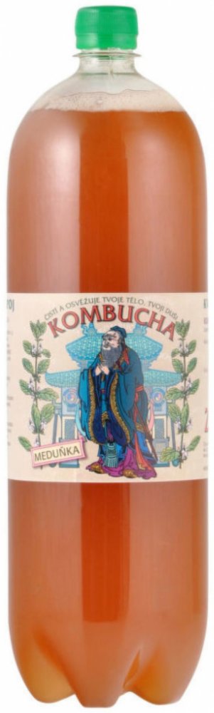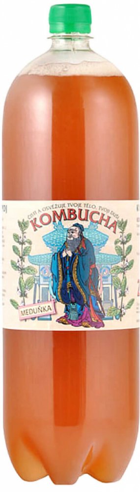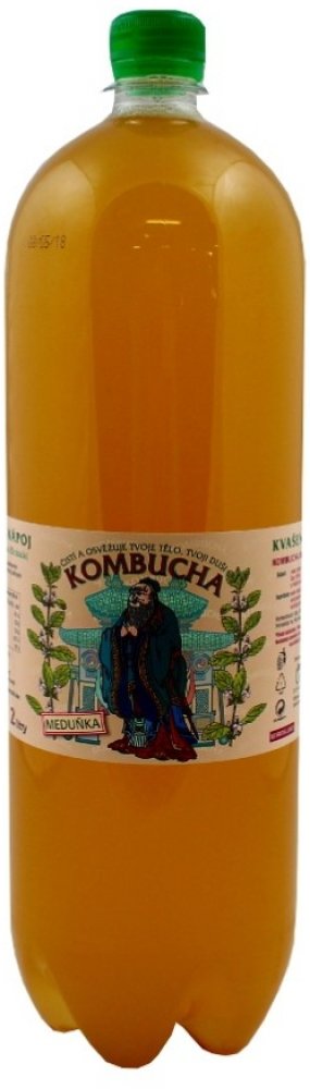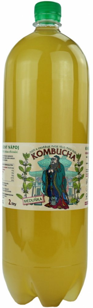 Složení: Voda, třtinový cukr, odvar z meduňky (50 %) a zeleného čaje (50 %), cukr, kvasinkové kultury a mléčná bakterie.