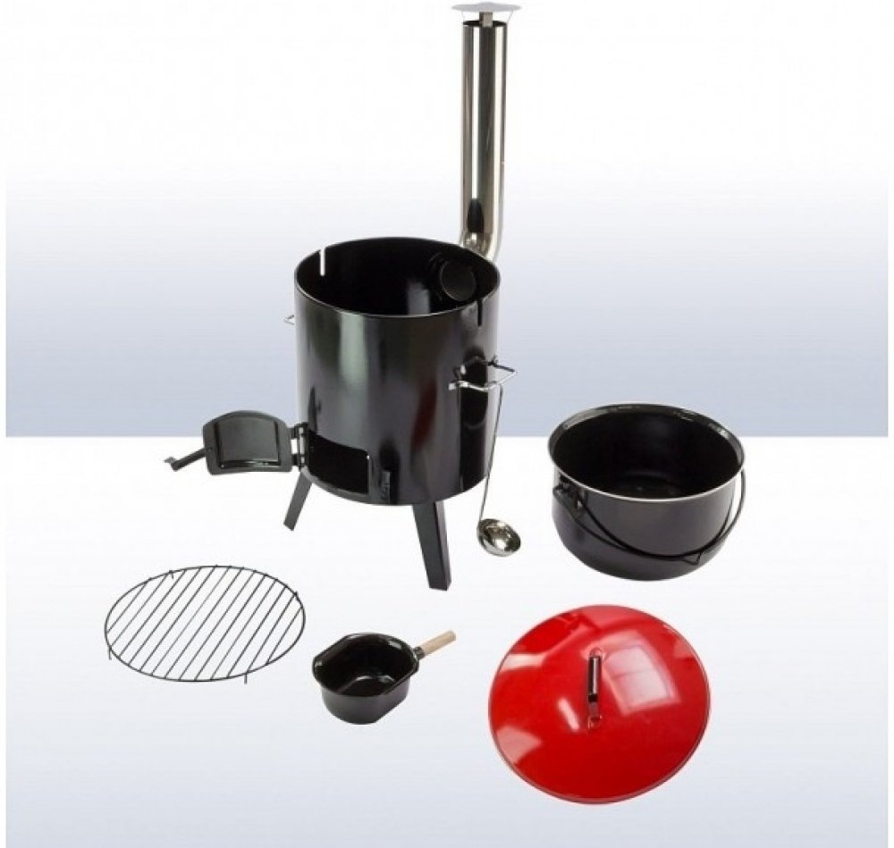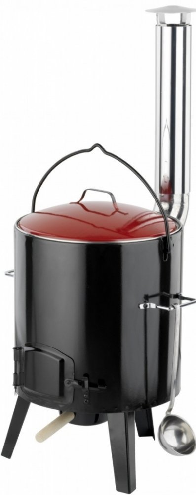 Pohodové chvilky venku s přáteli nemusí být vždy jen o grilování. Více a více oblíbené se stávají oslavy, při kterých se připravují tzv. jídla z jednoho hrnce. Může to být tradiční guláš, husté polévky, masa s omáčkou nebo třeba ovar. V tomto kotlíku skvěle připravíte i horké nápoje – svařené víno, grog a další alkoholické i nealkoholické dobroty. Na kvalitě záleží, proto je souprava Activa vyrobena z oceli potažené tvrdou vrstvou smaltu, což přispívá k velmi dlouhé životnosti a odolnosti proti prorezavění. Smaltem je samozřejmě ošetřený i objemný 14 litrový kotlík, poklice a rovněž celé topeniště. Komín je potom vyveden v trvanlivém nerezu. V topeništi můžete topit jak dřevěným uhlím, dřevem nebo briketami, tak například i plynovým hořákem. Součástí soupravy je i nerezová naběračka a velký odnímatelný popelník. Jak celý kotel, tak i vnitřní kotlík jsou vybaveny madly pro snadné přenášení a manipulaci.