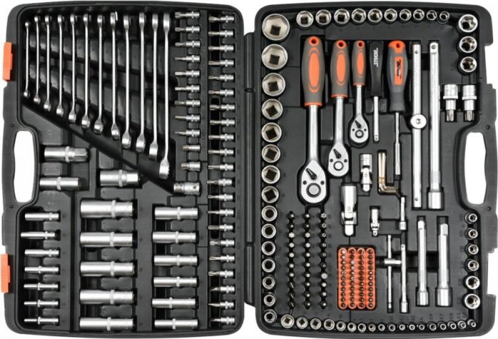 bity, prodloužení, vratidlo, nástavce a jiné ruční nářadí v balení, Křížový Phillips (PH), Křížový Pozidriv (PZ), Imbus (HEX) a Torx (T) bit, kufřík součástí, 216dílná, 1/2" čtyřhran, materiál hlavic Chrom-vanadová ocel (Cr-V), plastová rukojeť, systémem As-Drive, rozměry obalu 10,5 × 37,5 cm (V×H), hmotnost 11 kg (5906083586910)