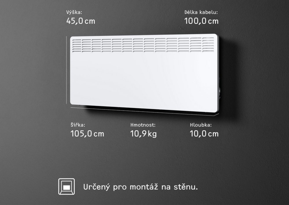 Konvektor k zavěšení optimální jako doplňkové nebo přídavné topení