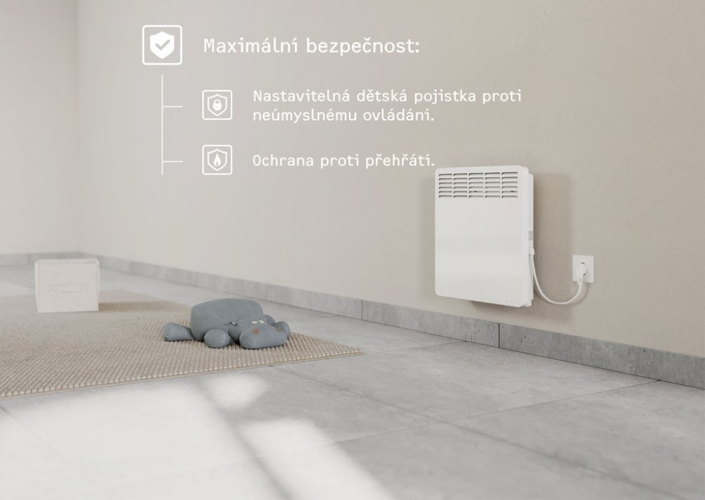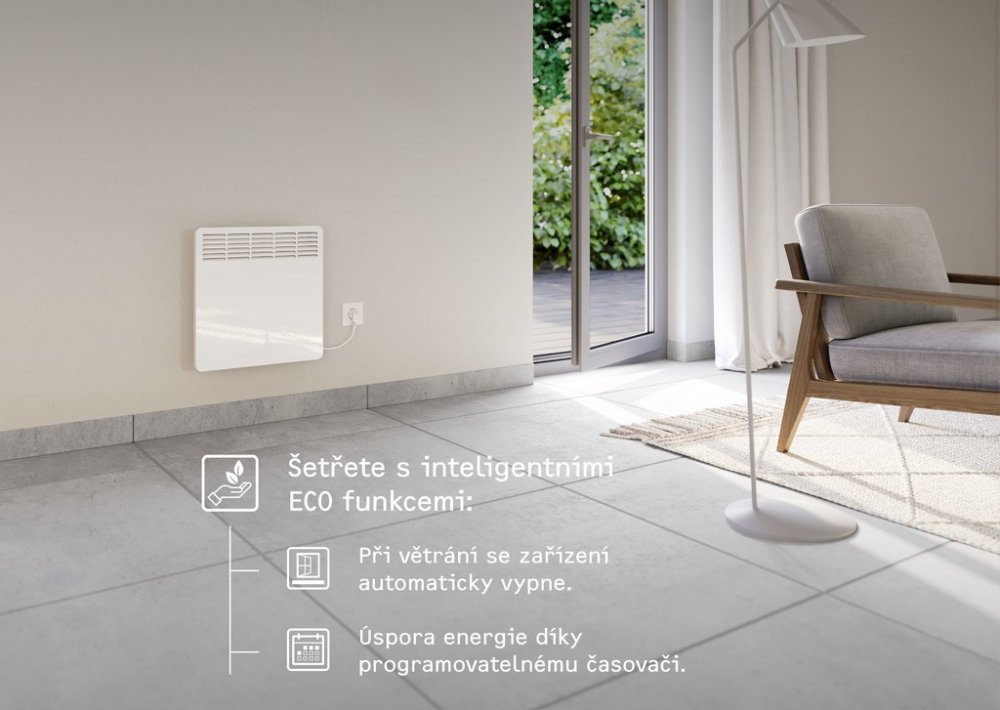 Ačkoli působí velmi nenápadně, dokáže efektivně vytopit místnost a udržovat stabilní teplotu. Praktické funkce, jako je týdenní programátor a detekce otevřených oken, vám zajistí snadné ovládání i úsporu energie. Tento konvektor spojuje elegantní design, komfort a inteligentní vytápění v jednom.