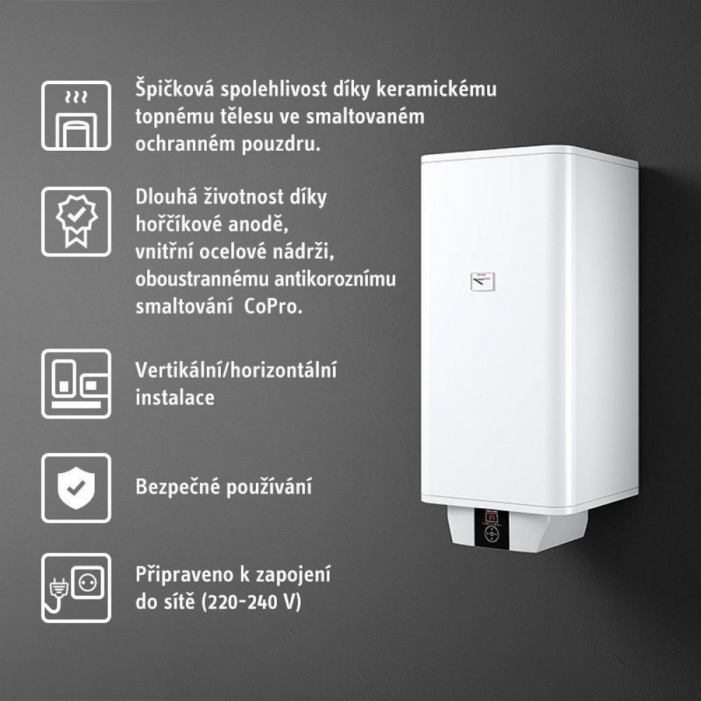 STIEBEL ELTRON PSH 80 UNIVERSAL EL zásobník vody 80 litrů, nástěnnýTECHNICKÉ PARAMETRY:Šířka: 475 mmHloubka: 492 mmVýška: 893 mmHmotnost: 34 kgJmenovitý objem: 80 litrůVÝKONOVÉ PARAMETRY:Příkon: 3 kWKmitočet: 50/60 HzPohotovostní spotřeba energie/24 hod. při 65 C vertikální: 0,79 kWhPohotovostní spotřeba energie/24 hod. při 65 C horizontální: 1,07 kWhDruh krytí (IP) horizontální: IP24Druh krytí (I...