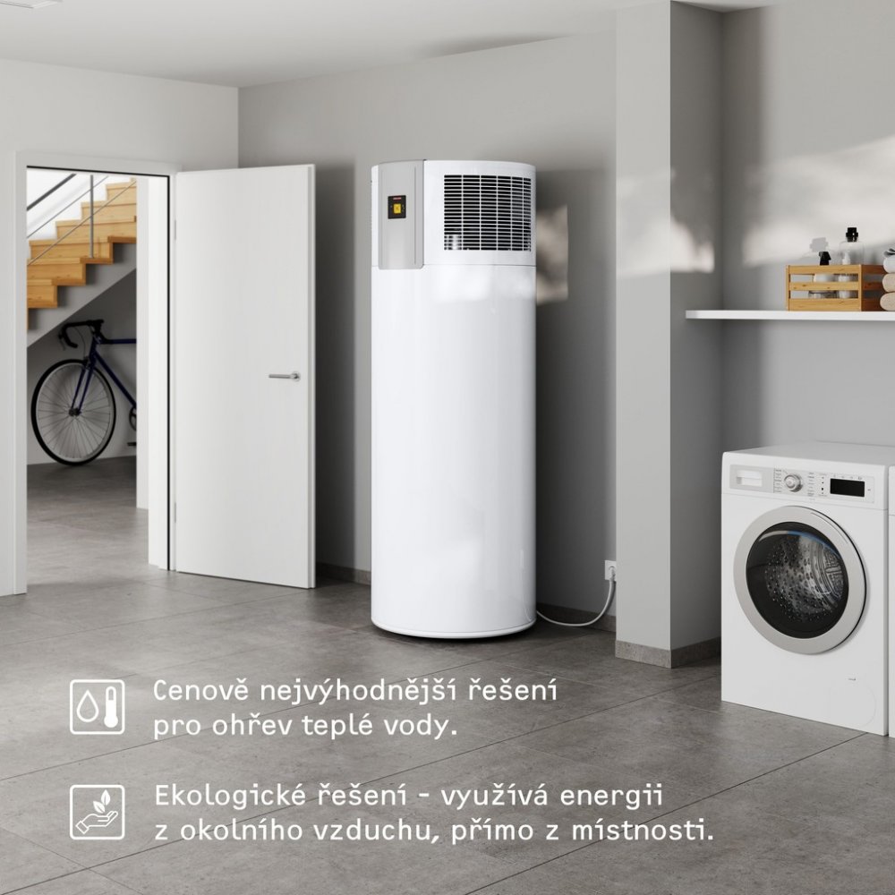 Použití • Tepelné čerpadlo pro přípravu teplé vody pro provoz s okolním vzduchem může efektivně zásobovat několik odběrných míst. Díky své kompaktní konstrukci nezabírá mnoho místa. • Odpadní teplo z jiných přístrojů v instalační místnosti (např. chladicí pult, sušička prádla, topidlo) se využívá ke zvýšení energetické účinnosti celého zařízení.
