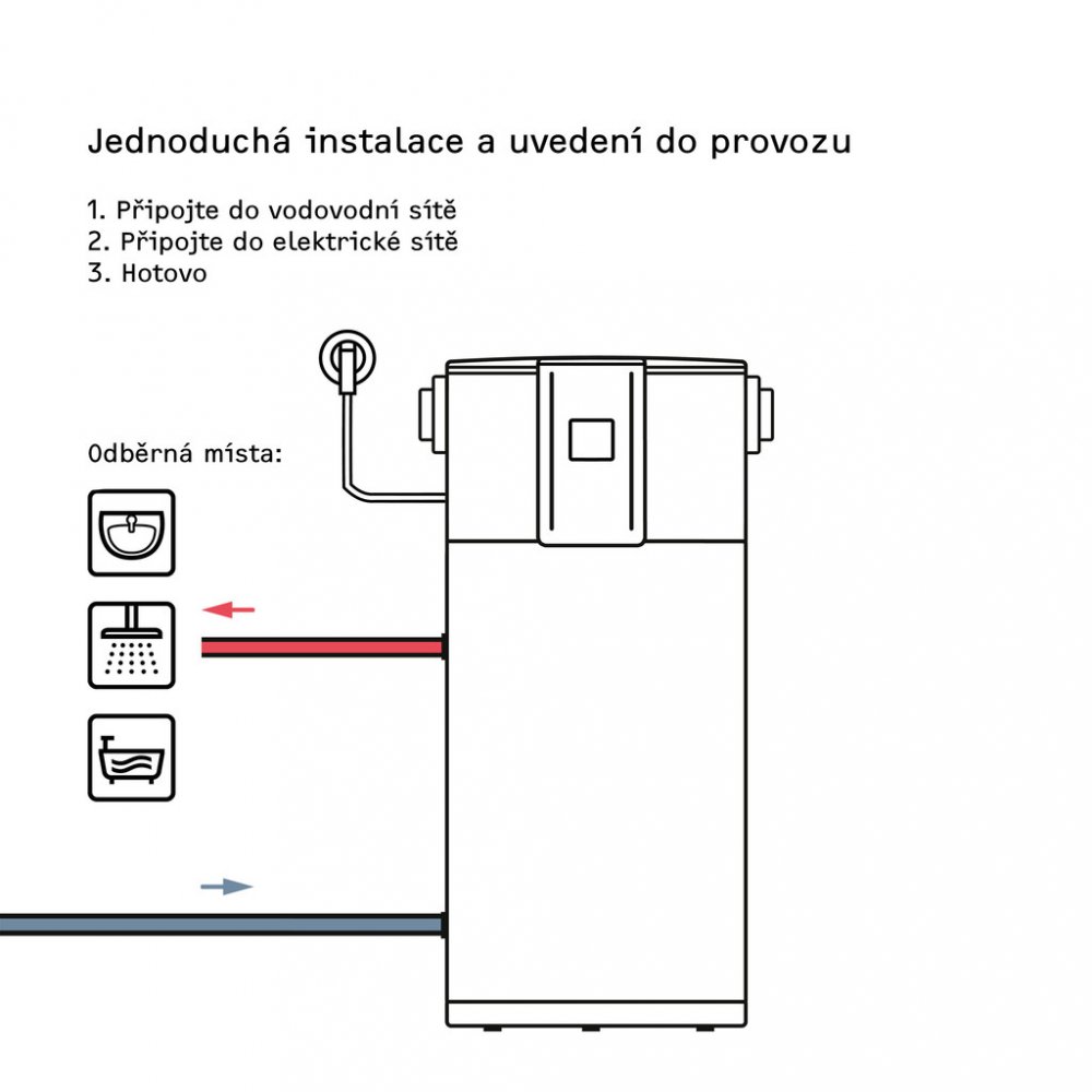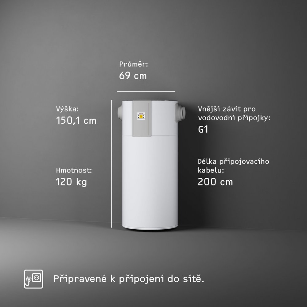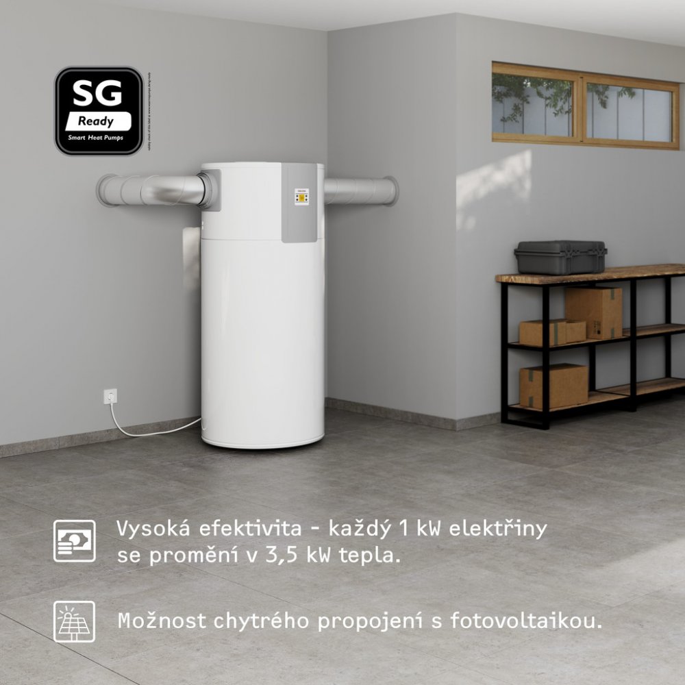 Komfortní charakteristiky • Náročné odběrné profily zajišťují velmi vysoký komfort teplé vody. V čistém provozu tepelného čerpadla jsou možné vysoké teploty a tím efektivní hygienická příprava teplé vody. • Vysoký komfort obsluhy. Elektronický regulátor je vybaven LCD displejem, který zobrazuje aktuálně dostupné množství smíšené vody. • Tichý provoz díky kompresoru zvukově izolovanému od proudu vzduchu. • Bezpečnost a úspora nákladů díky z výroby integrované aktivní anodě s externím napájením.