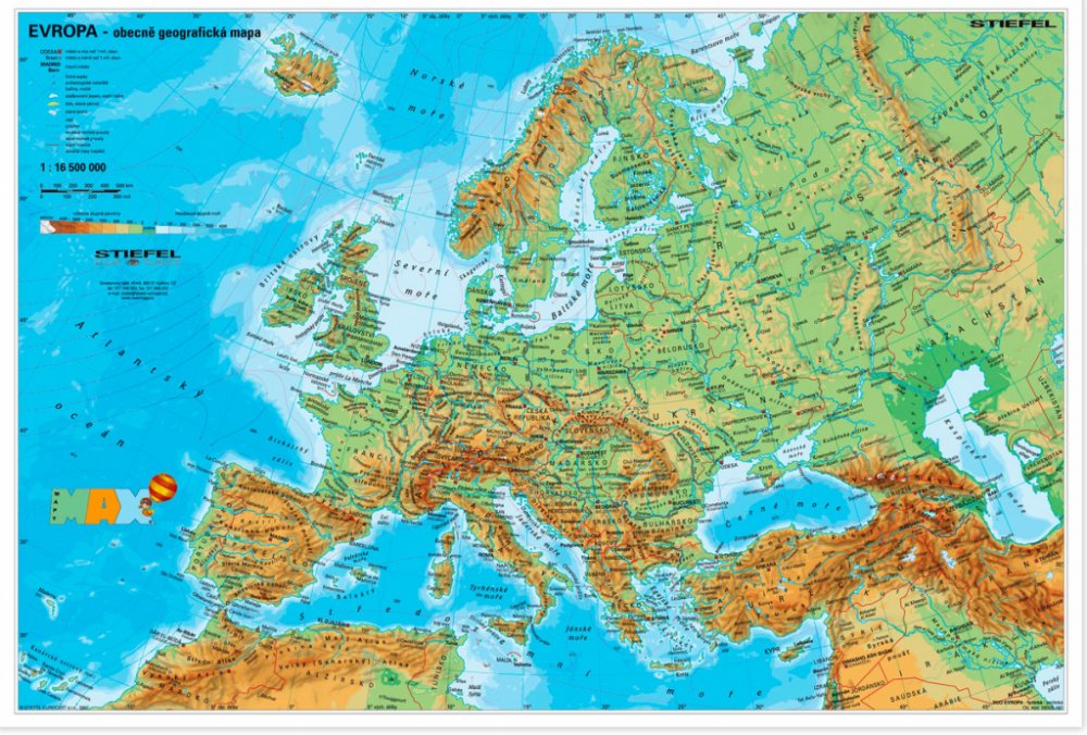 Oboustranná mapa Evropy - obecně zeměpisná a politická patří do základní výbavy hodin zeměpisu na základních, středních a zvláštních školách. Použití mapy při hodinách zeměpisu usnadňuje popis a zapamatování si zeměpisné polohy Evropy, členitosti pobřeží, povrchu, vodstva a jednotlivých zeměpisných oblastí. Politická mapa napomáhá vyhledat jednotlivé státy, hlavní a velká města, porovnávat rozlohy...