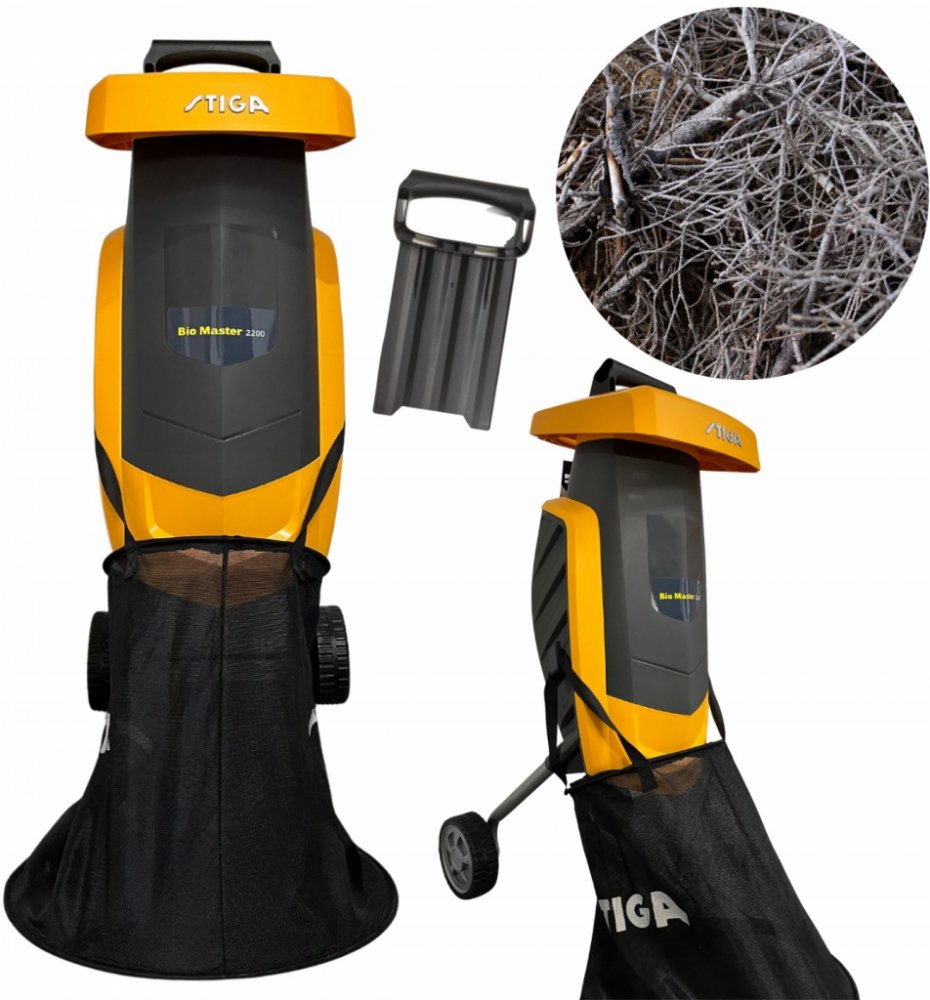 Drtič větví STIGA BIO MASTER2200, vhodný pro drobné zahradkáře a kolem obytných domů.