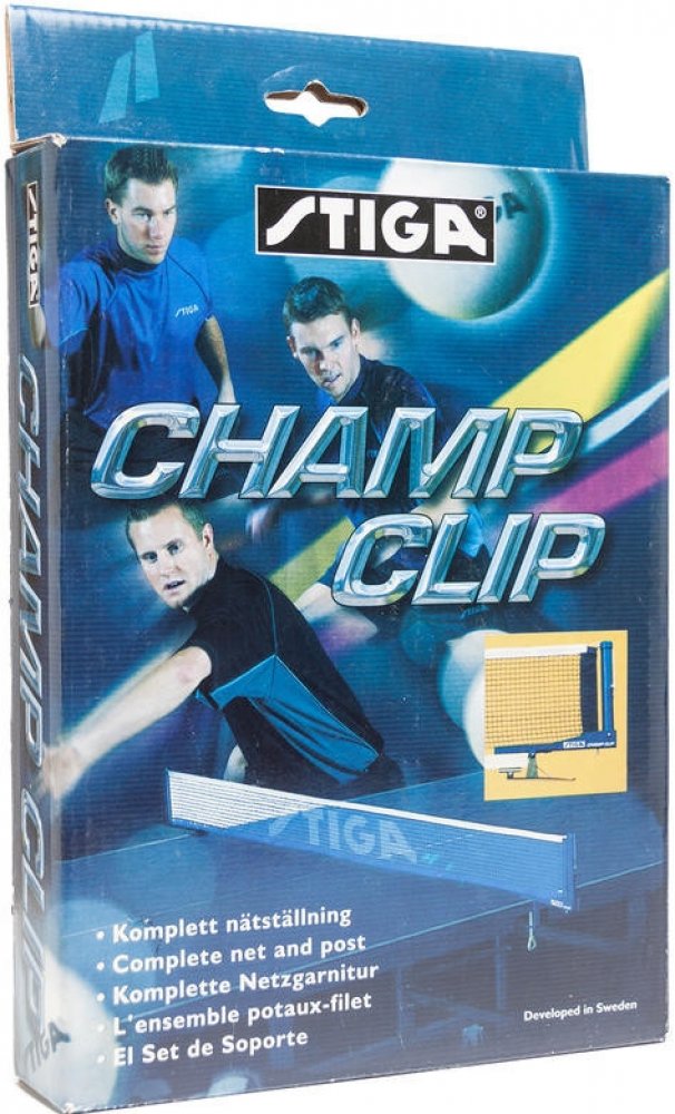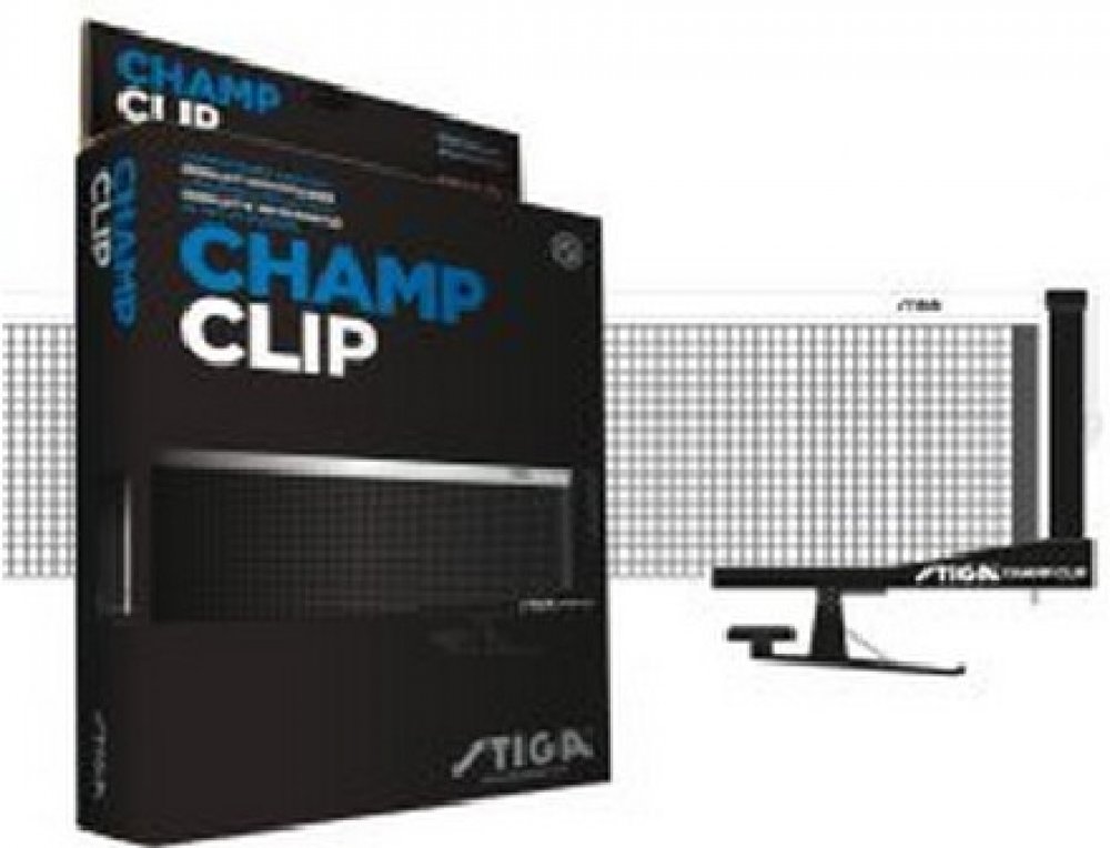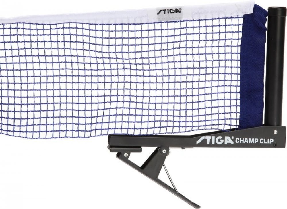 Champ Clip je kvalitní síť na stolní tenis, kterou během pár vteřin připravíte ke hře. Síť je vyrobena z modré nylonové síťoviny, takže je dobře viditelná. Síťku na stůl snadno uchytíte klipovým úchytem, bude tak pevně držet a nebude během hry padat. Uchycení umožňuje napnutí sítě.