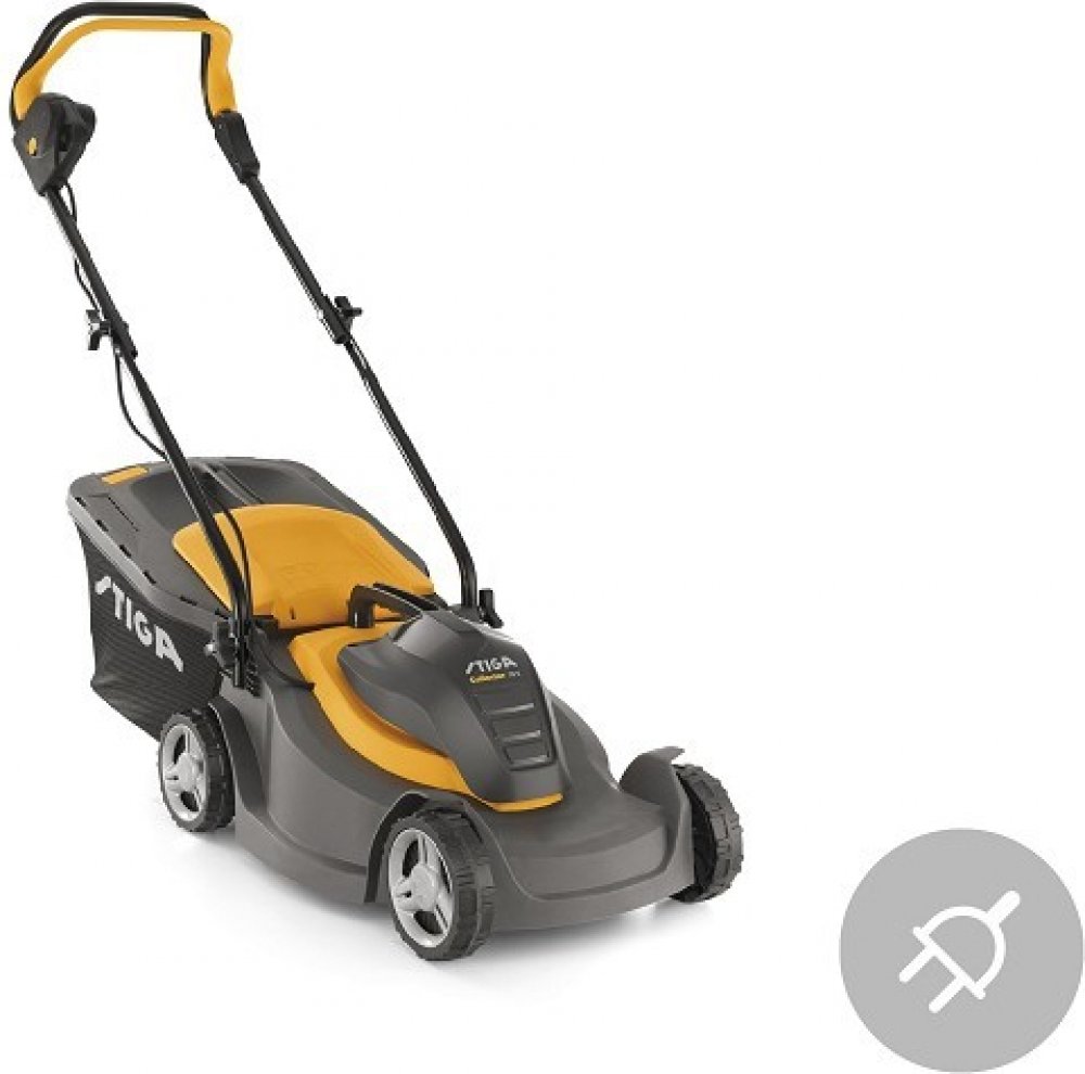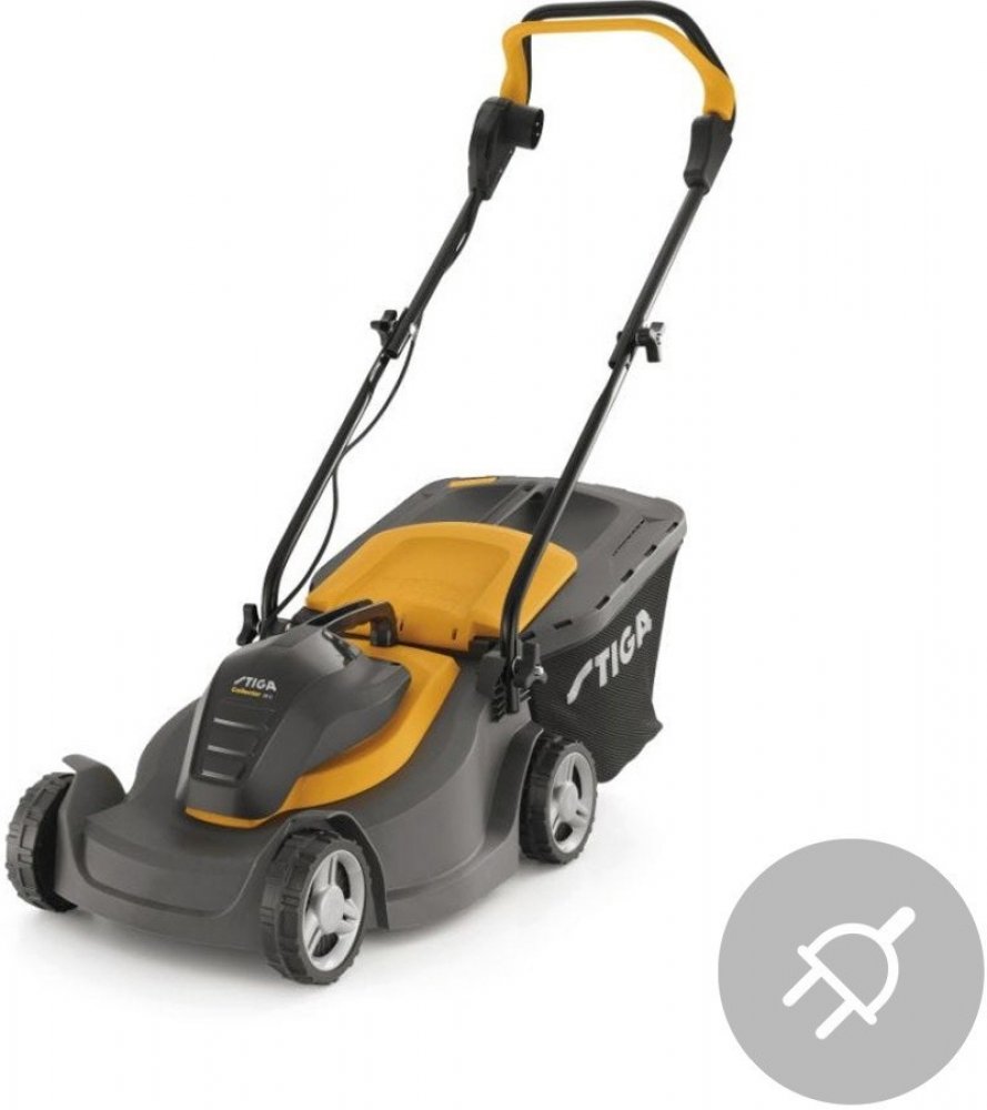 Stiga 37 cm 93 dB plastové 15 kg bez pojezdu elektrické rotační 40 l 500 m2 1400 W elektromotor 65 mm s látkovým košem