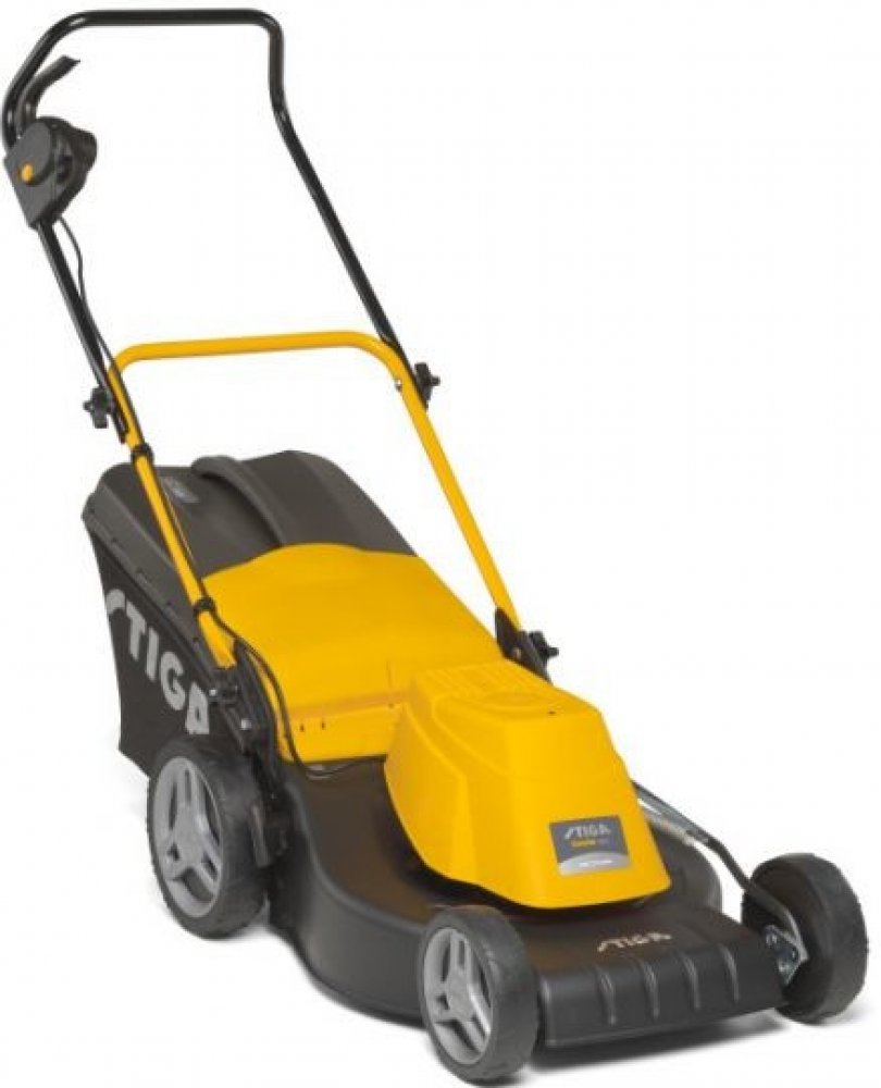 Stiga 1600 W 48 cm 95 dB ocelové 26 kg bez pojezdu elektrické rotační 60 l 1000 m2 1600 W elektromotor s látkovým košem