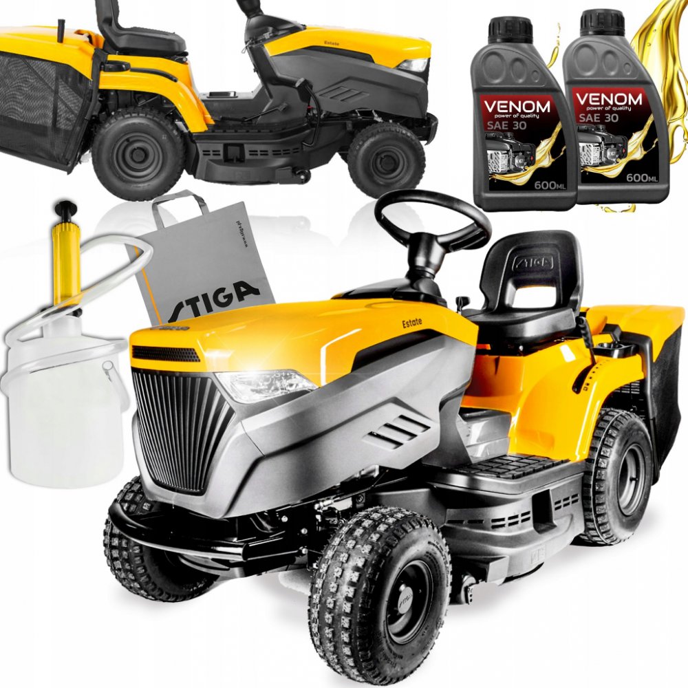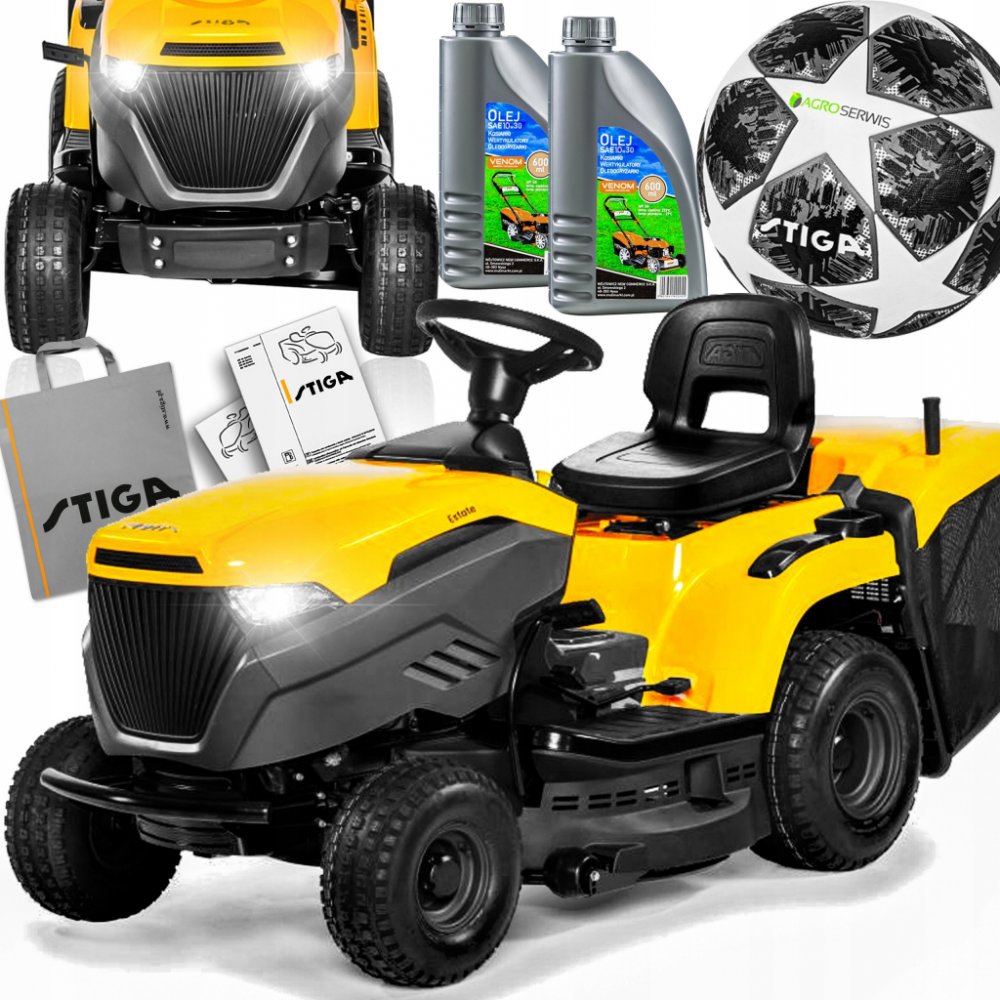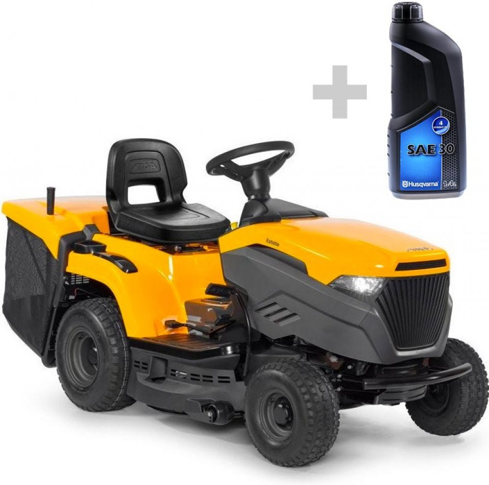 STIGA Estate 384 je vybavena benzínovým motorem STIGA s čistým výkonem 6,8 kW při 2 400 ot/min. Stroj je vybaven hydrostatickou převodovkou ovládanou pedálem, která umožňuje měnit rychlost jízdy bez nutnosti změny převodu. Žací ústrojí o šířce 84 cm má dva nože a 7 poloh nastavení výšky střihu od 25 do 80 mm. Dále je vybaven praktickým systémem elektromagnetické spojky nože, který je ovládán tlačí...