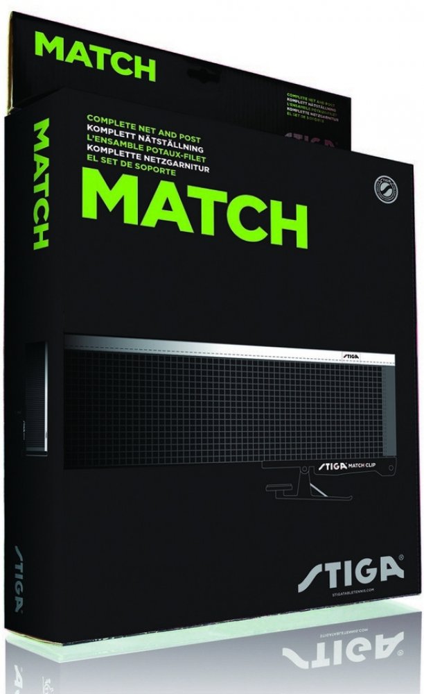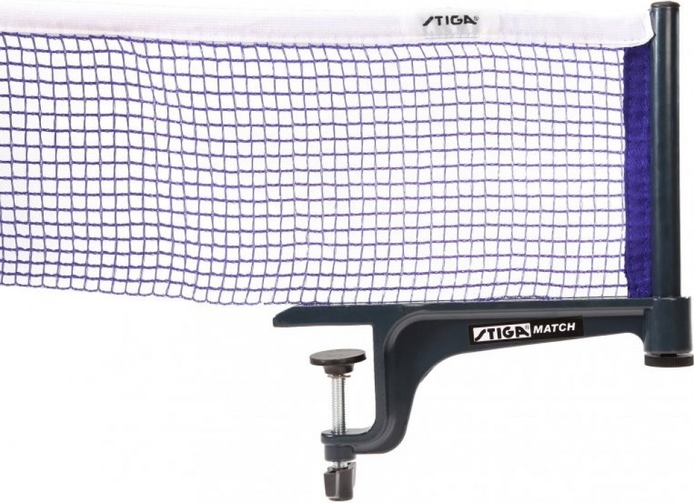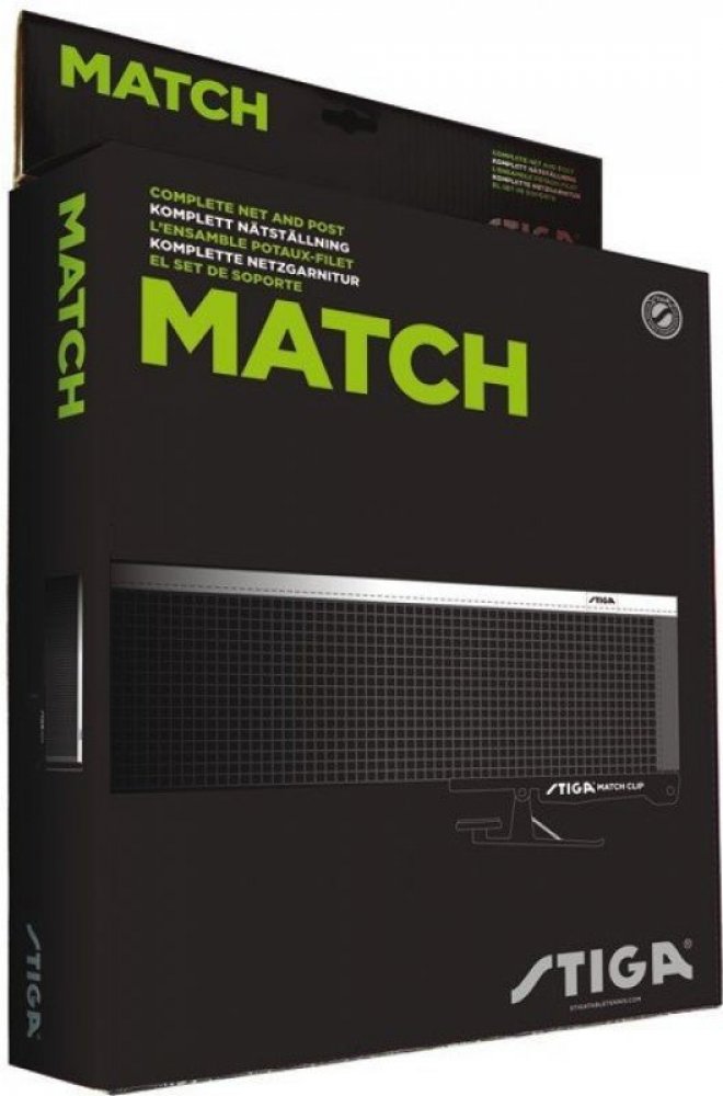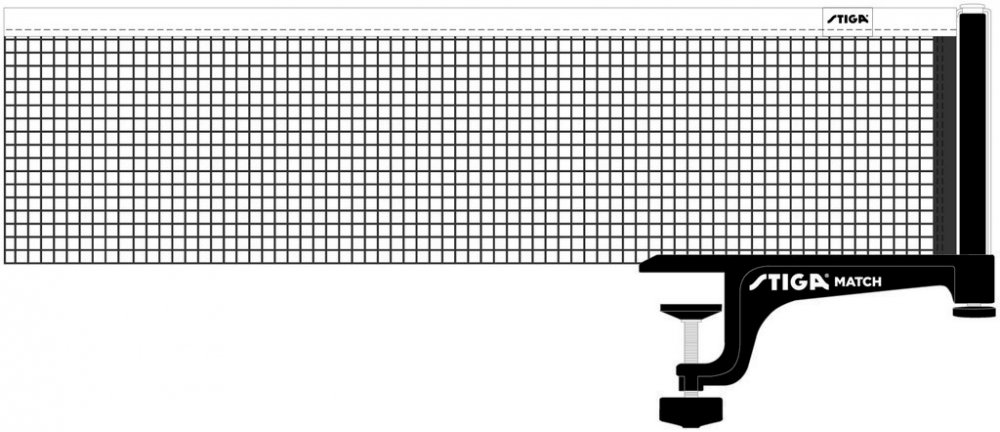 Síť na ping pong Stiga Match 6370-00 Síť na stolní tenis Stiga. Nylonová síťovina na rámu má nastavitelnou intenzitu. Upevňuje se pomocí šroubů s gumovými podložkami, které zabraňují poškození povrchu, na který je namontován. Tento model se hodí pro většinu stolů.
