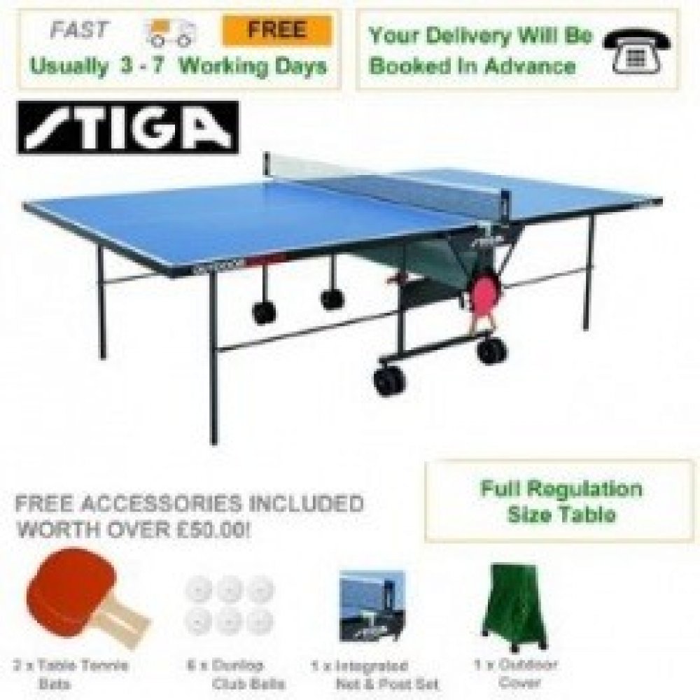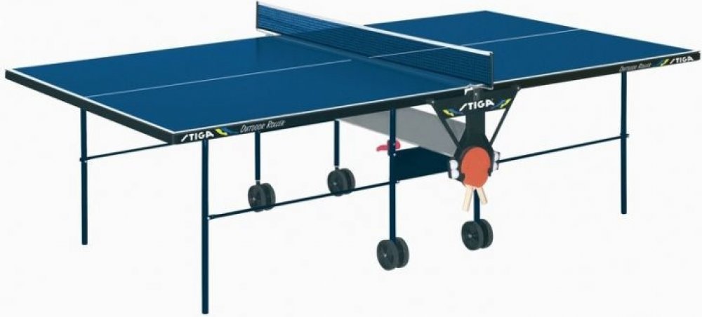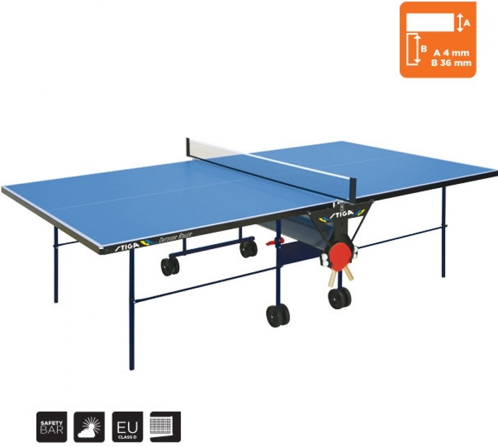 Venkovní stůl STIGA se speciální melaminovou deskou o síle 4 mm, na kolečkách. Včetně síťky. Odolný proti slunci, dešti, mrazu a poškrábání. Váha 60 kg.Rozměry stolu ve složeném stavu:délka: 184 cm, šířka: 66,5 cm, výška: 187 cm.