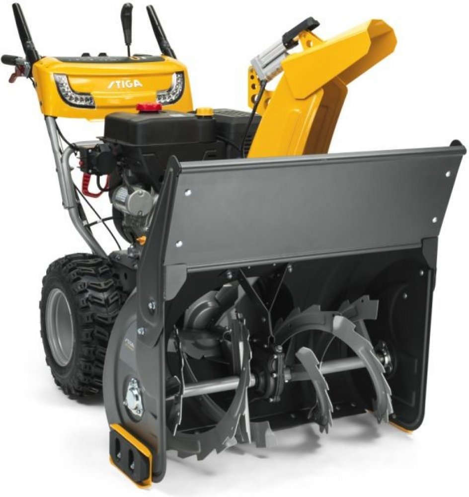 Všechny ovládací prvky jsou pohodlně umístěny na středovém panelu. Sněhová fréza ST 7276 PH je vybavena velkými 16 "sněhovými pneumatikami, takže je ideální pro odklízení sněhu ze všech povrchů. Dále je vybavena vyhřívanými rukojeťmi, LED světlomety a 230 V elektrickým startérem, který usnadňuje startování motoru i při velkém mrazu.